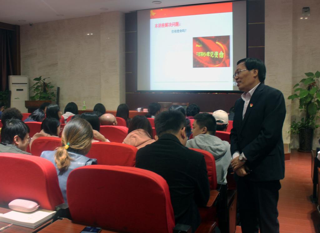 讲座伊始,任者春带领大家回顾了习近平总书记有关“不忘初心,牢记使命”的相关论述,并以“四个迫切”为重点展开阐释。而后,任者春以“你有使命吗”、“请描述你的使命”引出对使命含义的深刻探讨,语言风趣幽默,内容引人入胜。关于使命是什么,任者春通过典型使命人物杨子荣和张骞等人的事例进行了具体阐释。谈到使命的特征,任者春为大家讲述了马拉松由来的故事,用这一故事鲜明地印证了使命的神圣性。随后,任者春剖析了使命型政党的特征,论述了使命担当何以必然。在接下来使命如何担当的问题中,任者春以孔子、荆轲与张自忠为例向大家具体说明了作为时代担当者应有的态度,在场的每一位党员都备受鼓舞。最后,任者春借用毛主席诗词名句“数风流人物,还看今朝”,鼓舞在场的每一位师生党员,现场响起热烈的掌声。