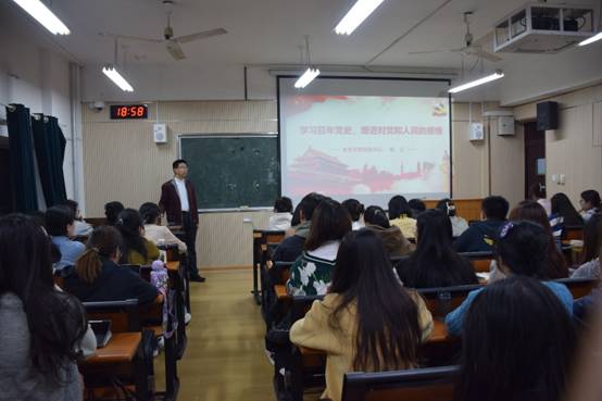 陈正以“学习百年党史,增进对党和人民的感情”为主题,为党基班学员作报告。报告伊始,他首先向同学们提出一个问题:为什么而入党,入党的初衷是什么?一名研究生结合自己海外留学的亲身经历进行了回答,并总结为“因为中国共产党是先进的,她永远代表人民的意志和意愿。”陈正向同学们指出,回答这个问题不能只是一句口号或说说而已,应该认真学习百年党史,真正地从内心深处增进对党和人民的感情,结合新中国成立以来,特别是大家自身所经历的近10年来祖国各方面的发展变化,认真去寻找答案。于是,首先他用党带领全国人民抗击新冠疫情和建设社会主义现代化历程的事实案例,来向同学们说明中国共产党始终代表人民意志,全心全意为人民服务。随后,陈正带领大家学习百年党史,通过观看视频等多种方式向同学们展现了中国共产党百年来的历史贡献与功绩。最后,以习近平总书记对青年的希望和要求结尾,希望同学们珍惜每一次学习机会,进一步端正入党动机,认真学习党的历史和先进理论,自觉学习马上召开的党的二十大和习近平总书记重要讲话精神,在日常学习工作生活中真正发挥先锋模范作用,为同学们做好表率,积极争取早日加入中国共产党。