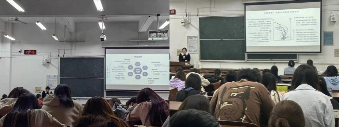 刘畅首先结合自己的亲身经历,向同学们详细从项目灵感来源、研究内容确定、项目团队合作和项目社会实践等方面展开介绍。同时,刘畅还向同学们强调了大量浏览相关期刊和做好项目前期准备的重要性,并提醒同学们在撰写项目报告时要注重文笔润色和心态调整,以最佳状态迎接挑战。
