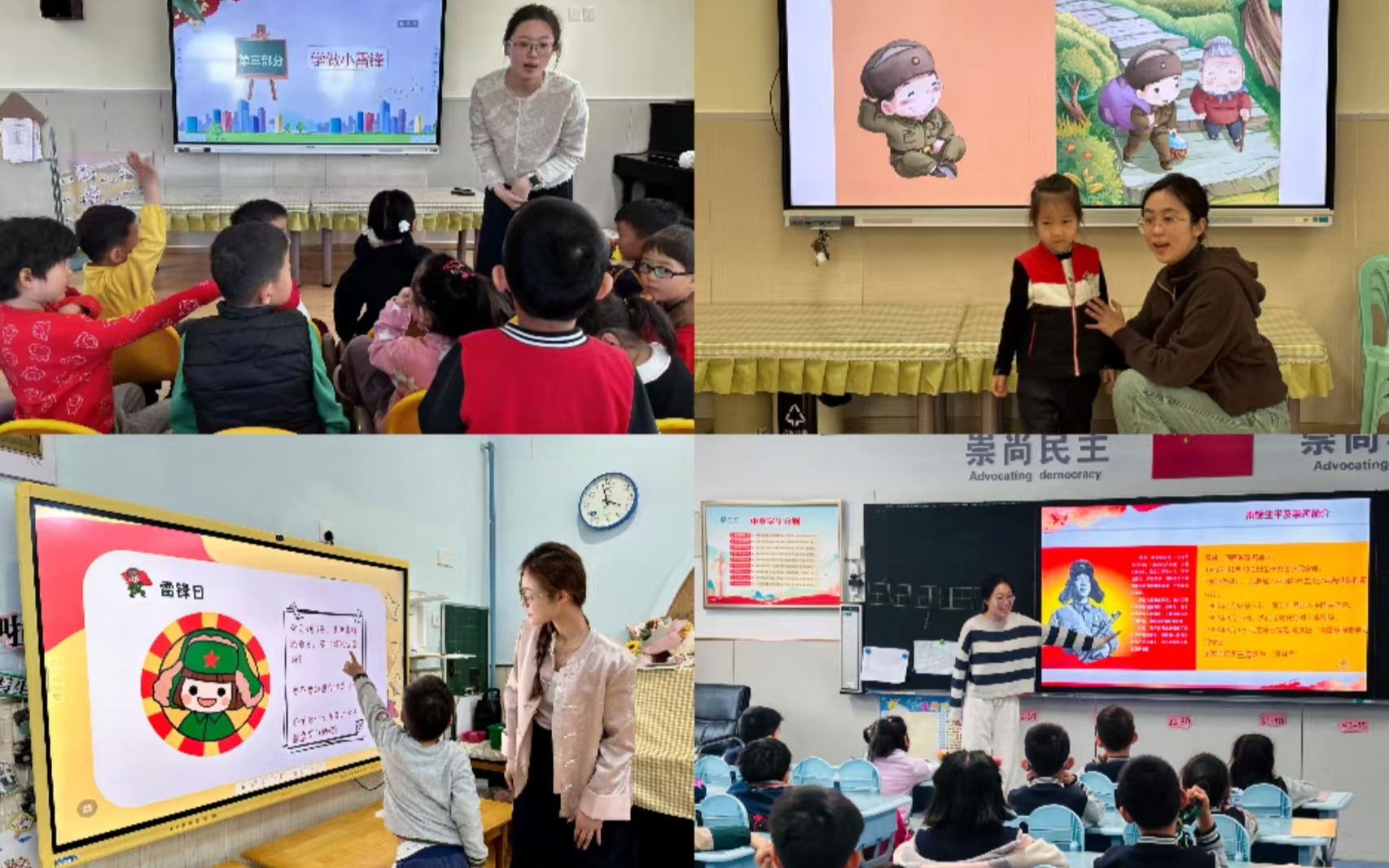 自3月以来,参与学生主动对接中小学、幼儿园,结合专业特长精心设计课程。宣讲课件以雷锋生平事迹为核心,融入抗疫先锋、身边榜样等新时代“雷锋”故事,通过图文并茂的PPT、视频片段、雷锋故事分享等形式,将雷锋精神具象化、生活化。同学们在宣讲中注重情感共鸣,课堂上既有宣讲人动情讲述,也有孩子们踊跃发言参与互动,还有集体合唱歌曲《学习雷锋好榜样》等,课堂氛围热烈。