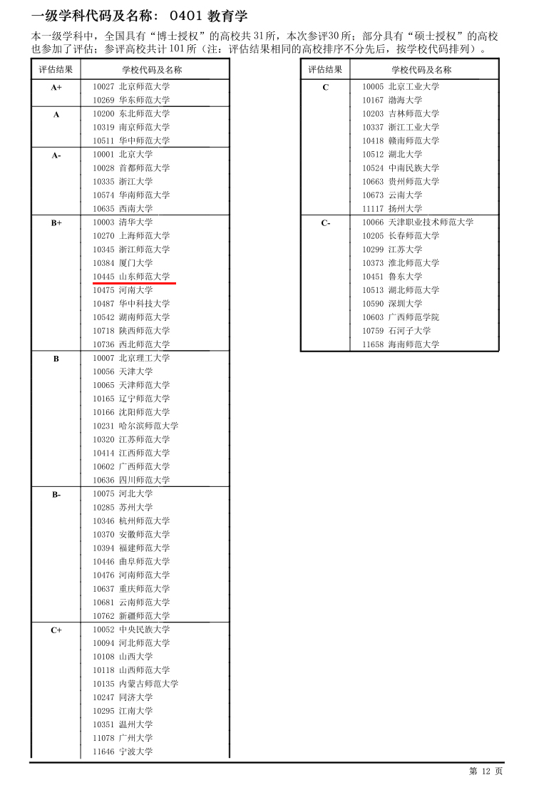近日,教育部学位与研究生教育发展中心公布了全国第四轮学科评估结果,学部取得可喜成绩。教育学一级学科被评为“B+”等次,在参评的101所高校中位列第11名,排名百分比为10.89%,位居全校各学科前列。