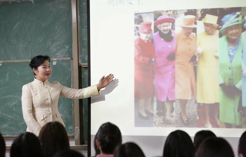 讲座伊始,周锦通过向同学们介绍中国传统礼仪文化,引出“礼是德的外在表现形式”,呼吁同学们尊师重道,重视形象,恪守礼仪。随后,周锦从东西方的色彩观入手,结合个人性格、肤色、体型、职业、场合等不同情况具体而明确地向在座学生阐明了服装搭配的知识与技巧。她指出,个人形象需要用服装衬托,还需要通过合适的发型与妆容来展现自己的美。为使同学们更切实地了解适合自己的搭配方式,周锦特意选出四位风格不同的同学,细致地点评了她们的发型与穿搭,她指出:“肤色较白,性格活泼的同学可以尝试亮色;肤色较深,性格沉稳的同学可以适当降低衣着的亮度与纯度。”在日常礼仪指导中,周锦也与同学们进行了互动,亲自讲解了走路姿态,手势礼仪等方面的知识,她要求同学们“坐如钟,站如松,行如风,卧如弓”。