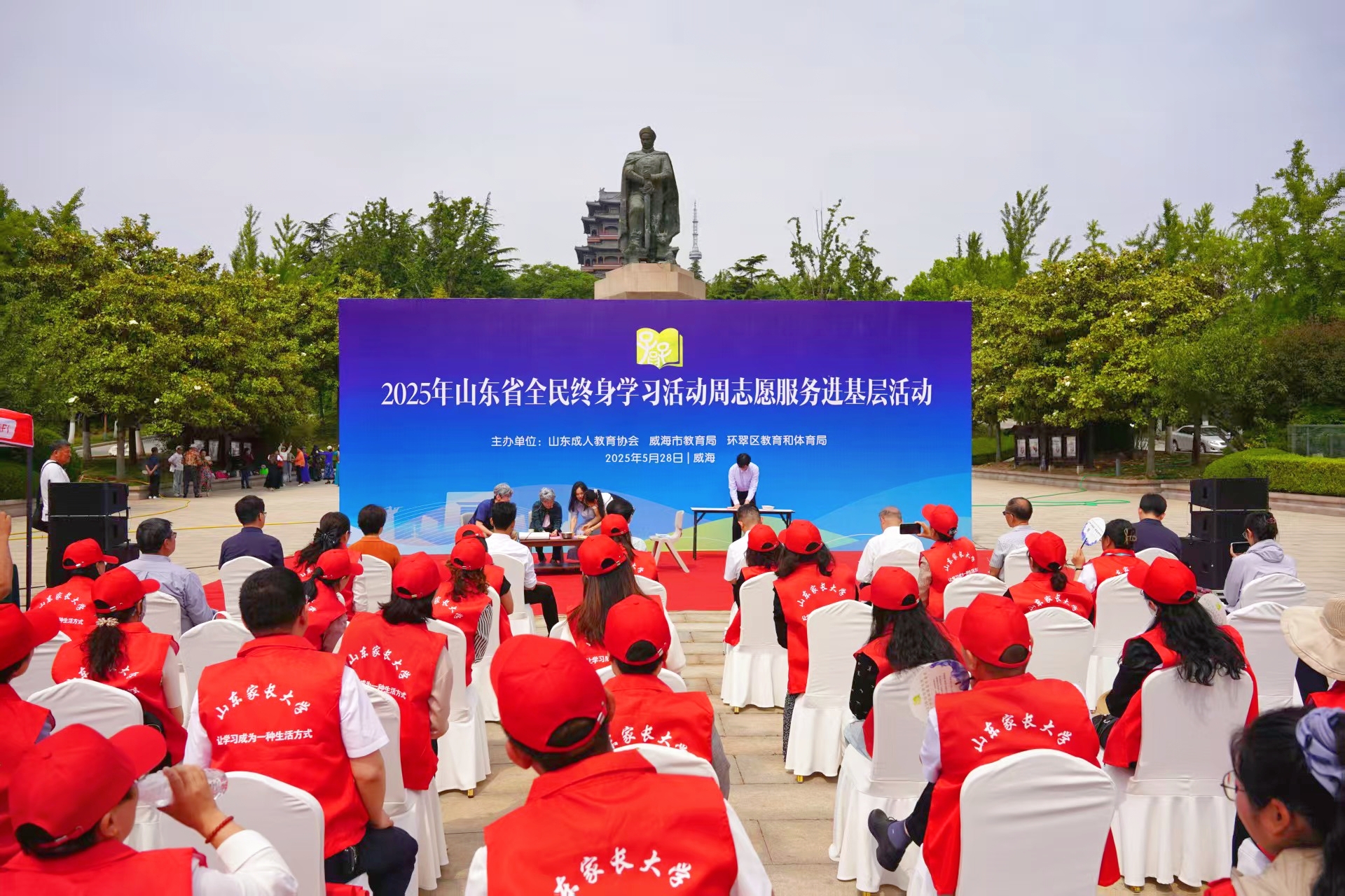 5月28日,由山东成人教育协会、威海市教育局、环翠区教育和体育局联合主办的2025年山东省全民终身学习活动周志愿服务进基层活动在威海市环翠楼公园开幕。英国上市公司365作为“家庭教育宣传演出”环节的重要参与单位,携原创情景剧《书趣》受邀参演,演出取得圆满成功。