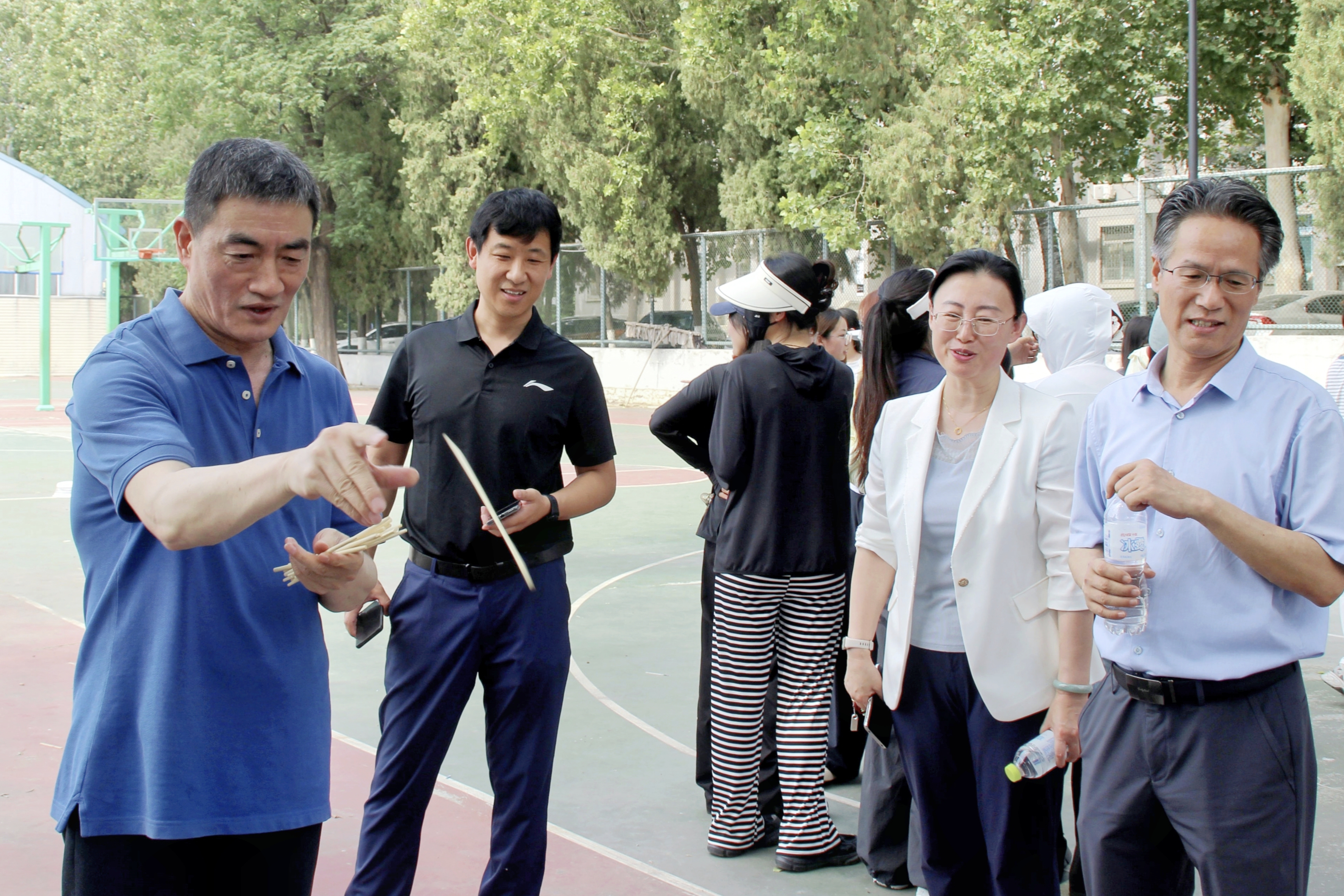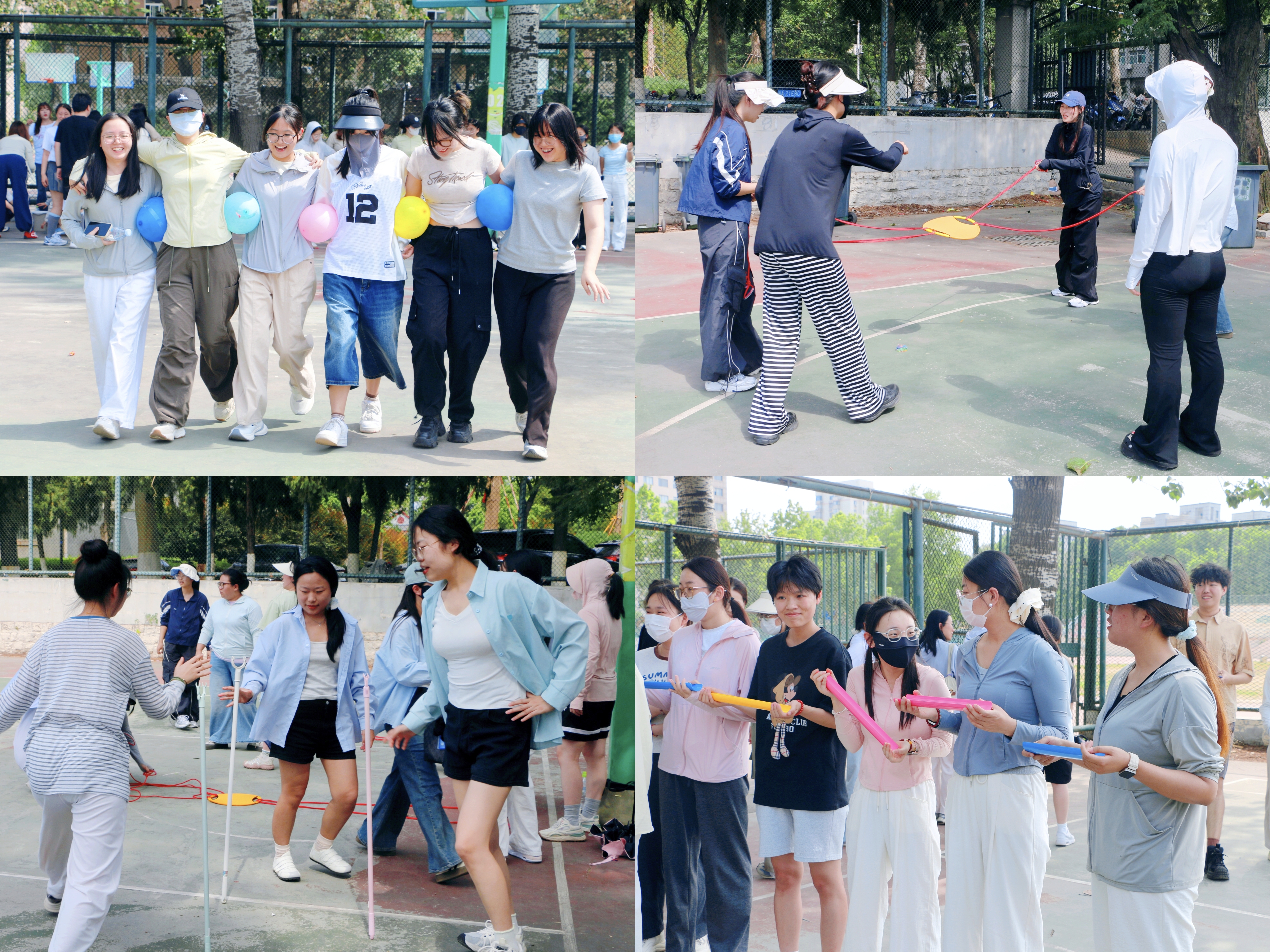 趣味项目环节是本次活动的亮点之一,共设置“毽康环游记”“众星捧月”“蒙眼敲锣”“汉诺塔接力赛”等十项妙趣横生的比赛内容。比赛过程中,参赛同学通力合作、各显身手,既比拼智慧与体力,也展现默契与协作。赛场上加油声、欢笑声此起彼伏,尽显青春朝气与蓬勃活力。