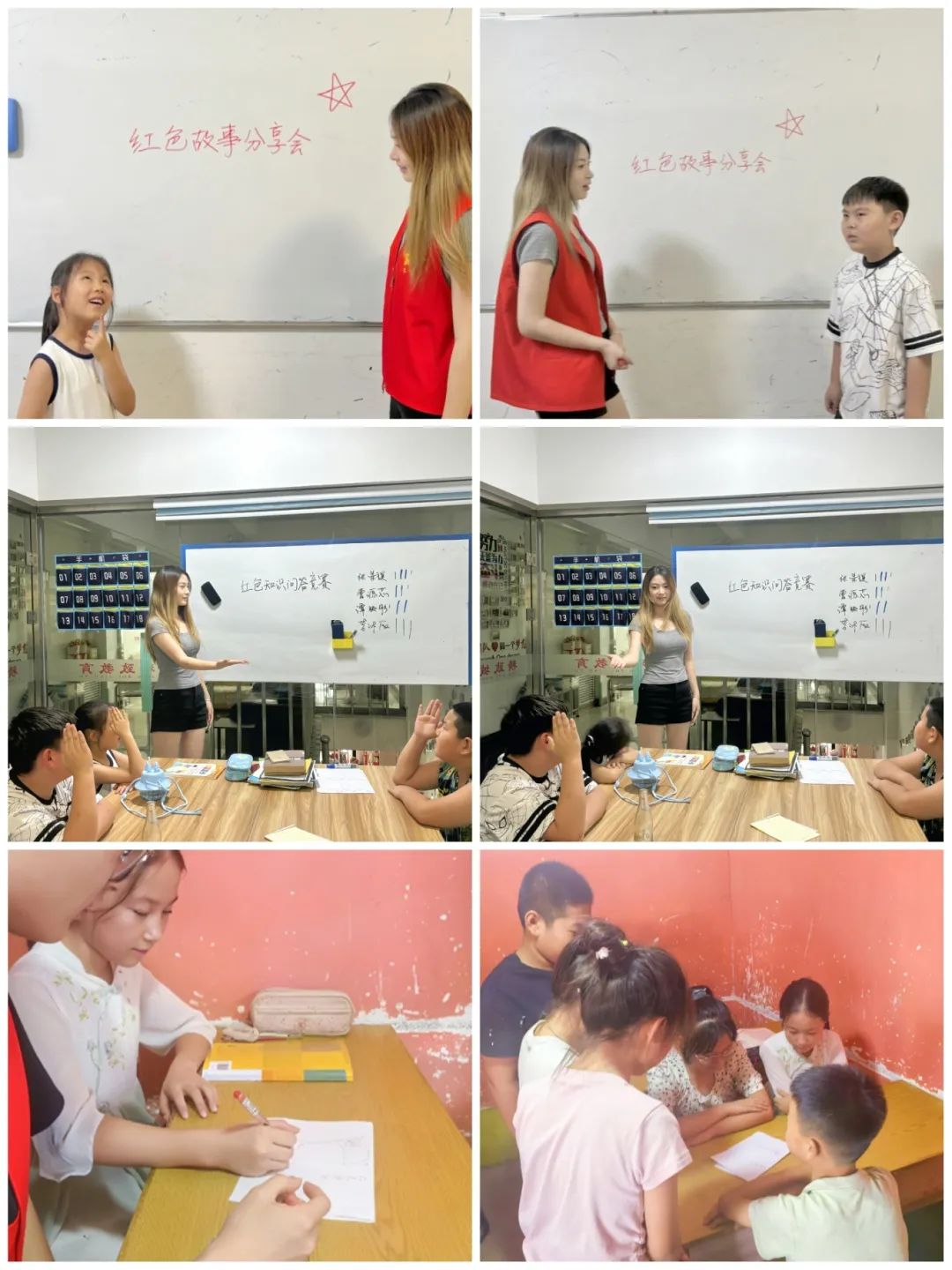 在革命精神的滋养下,团队成员将所学所思转化为教学设计,精心策划并面向小学生开展了丰富多样的红色教育活动。“故事传薪火”分享会中,实践团引导学生走上讲台,讲述英雄人物的动人故事,分享革命先辈的感人事迹。课堂气氛热烈,师生互动频繁,红色精神在轻松自然的氛围中实现了润物无声的传递。“知识竞风采”问答赛则充分考虑小学生的认知特点,围绕革命历史、英雄人物等内容设置题目,通过趣味性的抢答方式激发学生参与热情,帮助他们巩固相关知识,增强民族认同感。此外,团队还引导学生围绕“我心中的英雄”“红色记忆”等主题开展绘画创作活动。在成员们的细致指导与鼓励下,孩子们用稚嫩的画笔表达了自己对红色精神的理解与敬仰,一幅幅作品生动展现了红色基因在童心中的深深扎根。