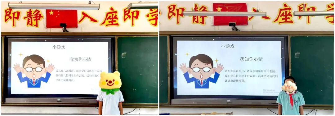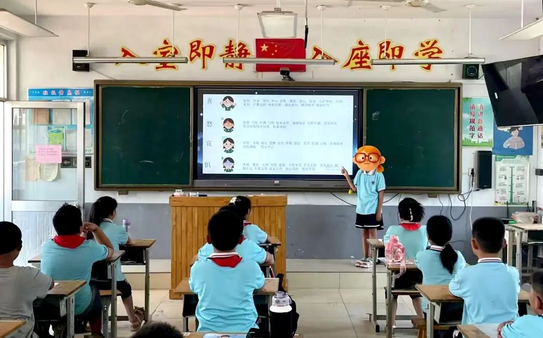 在小学课堂上,实践团队借助形象图片和情景再现,向学生直观展示喜、怒、哀、惧四大情绪的外在表现与行为反应。团队成员精心设计“我知你心情”互动游戏,邀请学生上台模仿多种情绪表情,让其他同学进行感知、猜测。这一环节瞬间点燃课堂氛围,也让学生在参与中深化对情绪的理解。