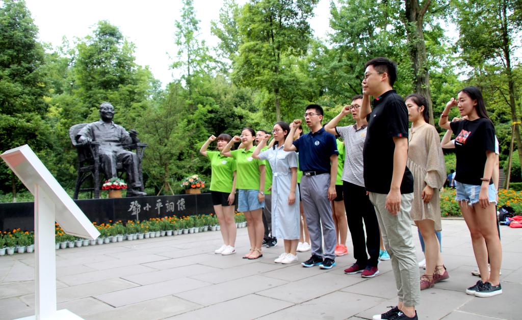 调研活动伊始,团队成员走进小平同志的故乡,感受了小平同志昔日的生活情景。面对真实朴素的领袖故里,团队成员真切地感受到了邓小平“逢山开路、遇水架桥”的革命精神,纷纷立志在开拓进取,勇于创新的同时也要脚踏实地,实事求是,争当中华民族伟大复兴新征程的排头兵。随后,在邓小平铜像广场,团队成员瞻仰了小平同志的铜像,重温了入党誓词,进行了庄严的宣誓,以最传统、最严肃、最庄重的方式来祝福、纪念、缅怀改革开放的总设计师小平同志。这一活动也大大激发了团队师生的荣辱意识和爱党爱国情绪,为接下来的行程奠定了良好的思想基础。