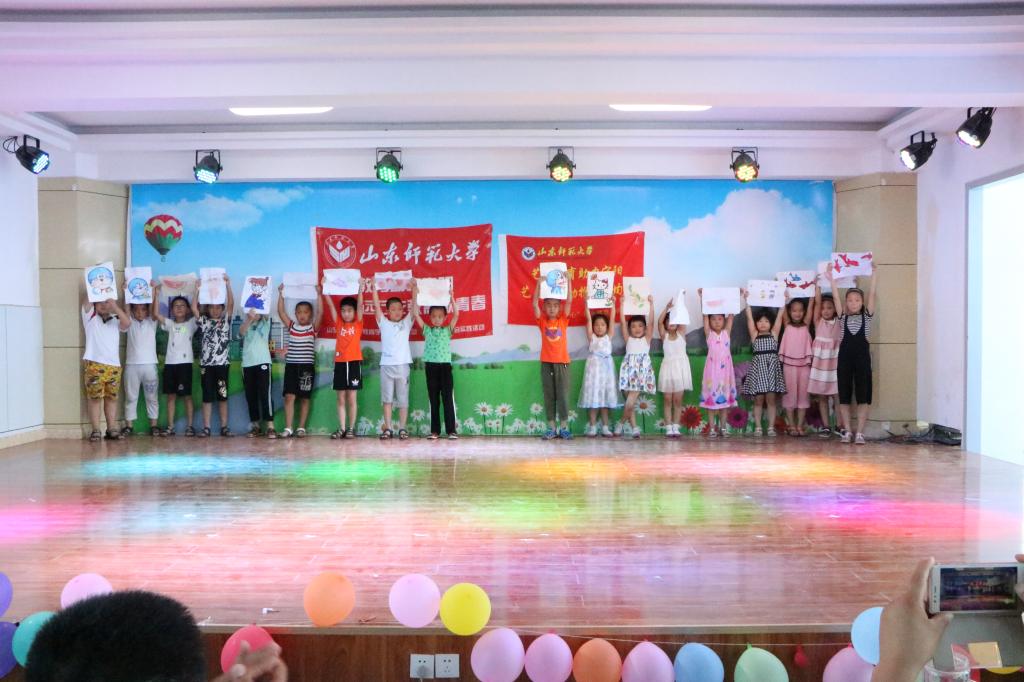 手工班的课本剧《从现在开始》中蕴含着深刻的哲理;思维导图班的唱跳歌曲《咖喱咖喱》活泼清新、引人入胜;一支细腻柔情的手语操《感恩的心》,表达了硬笔书法班的孩子们对老师、家长和同学的感恩和感谢。其后,电子琴班的歌曲《梦至十七岁》、英语口语班的歌曲串烧《DO RE MI+小星星》、绘画班的T台秀《art show》依次登场,这些形式新颖、激情飞扬的节目赢得了观众的阵阵喝彩,孩子们在舞台上尽情享受童年的快乐、在节目中忘情地张扬自己的个性。最后,离别和不舍的氛围愈渐浓烈,全体支教团成员带来改编歌曲《至京山路的日子》将汇演气氛推向高潮。在悠扬的歌声中,为期十天的暑期乡村少年宫支教活动圆满结束。