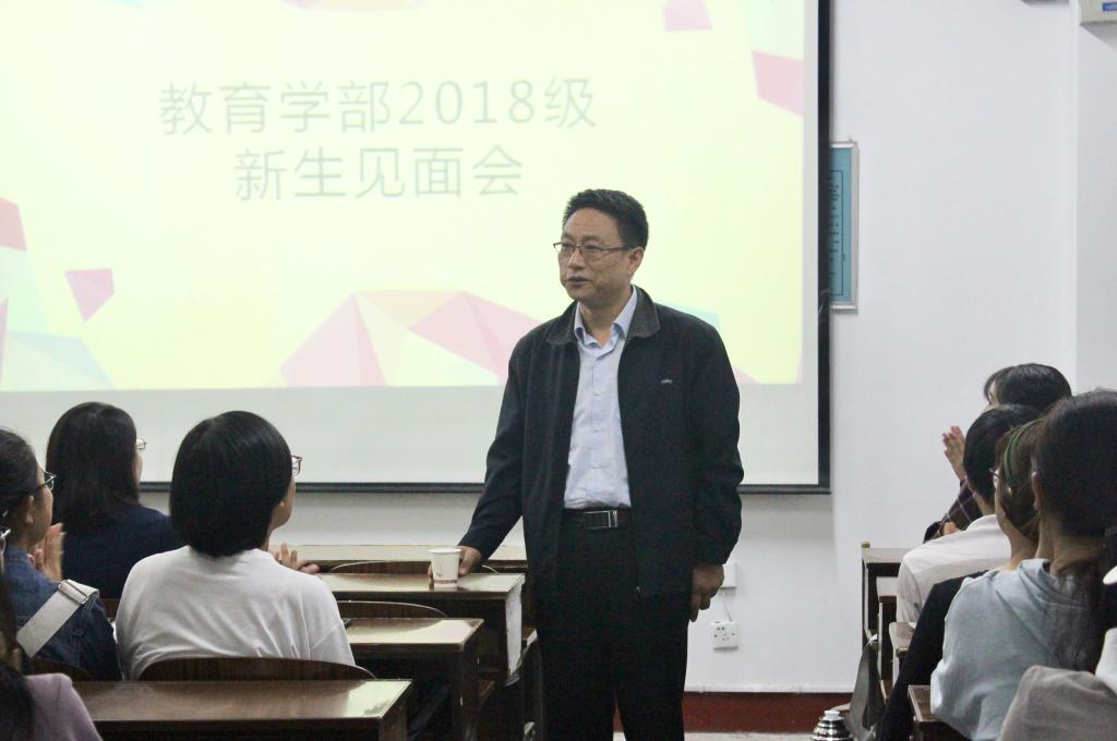 三次新生见面会均由2018级辅导员伊曼主持。会议伊始,伊曼播放新生入学短片并介绍莅临现场的领导、老师及英国上市公司365领导班子、其他本科辅导员。在教育学系见面会上,首先,王向华介绍道,教育学系是山东师大创立之初最早设立的学科之一,实力强劲、前景广阔。随后,冯永刚对新生表示欢迎并寄予厚望,他勉励同学们珍惜大学时光、不负青春韶华,勤奋学习,积极生活;路书红提出“书山学海充实知识、教育情怀志存高远”两点教育学专业学习要求;陈大兴结合“创践”等当下热点,鼓励新生灵活运用理论知识、密切关注教育实践研究、积极投身教育实践。最后,在师生互动环节中,王向华提出“三字一划”教师专业技能基本目标,并建议新生在技能学习方面早定计划、勤加练习,为未来发展奠定坚实基础。