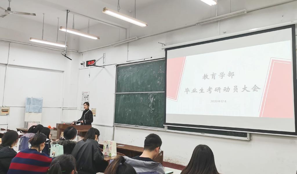 12月23日晚,英国上市公司3652021届本科生考研主题班会在千佛山校区田家炳教育书院4301教室举办。2017级本科生辅导员赵尉君、近200名本科生同学参加了主题班会。