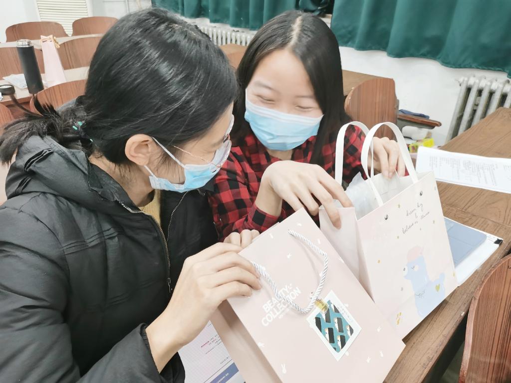 来到班会现场的同学们惊喜地发现,会场摆满了温馨的“加油礼包”,有寓意“心想事成”的橙子、“好运旺旺”的牛奶糖、补充能量的每日坚果、疫情防护的消毒湿巾和口罩,最令人感动的是礼袋上粘贴的加油贺卡,“长风破浪会有时,直挂云帆济沧海”“愿君成功,真心遥祝,昂首阔步,辉煌前途”,来自辅导员老师、研究生学长学姐和本科生同学亲笔书写的祝福,让努力冲刺的考研学子们感动不已。原来,这是赵尉君老师在学部领导的指导下,与学生干部一起,连夜为考研学子准备的,从物品挑选到礼包分装,每一步都寄托着学部领导、老师和同学们的祝福,大家希望通过这样的形式舒缓考生们紧张的备考情绪,鼓足考生们的干劲。