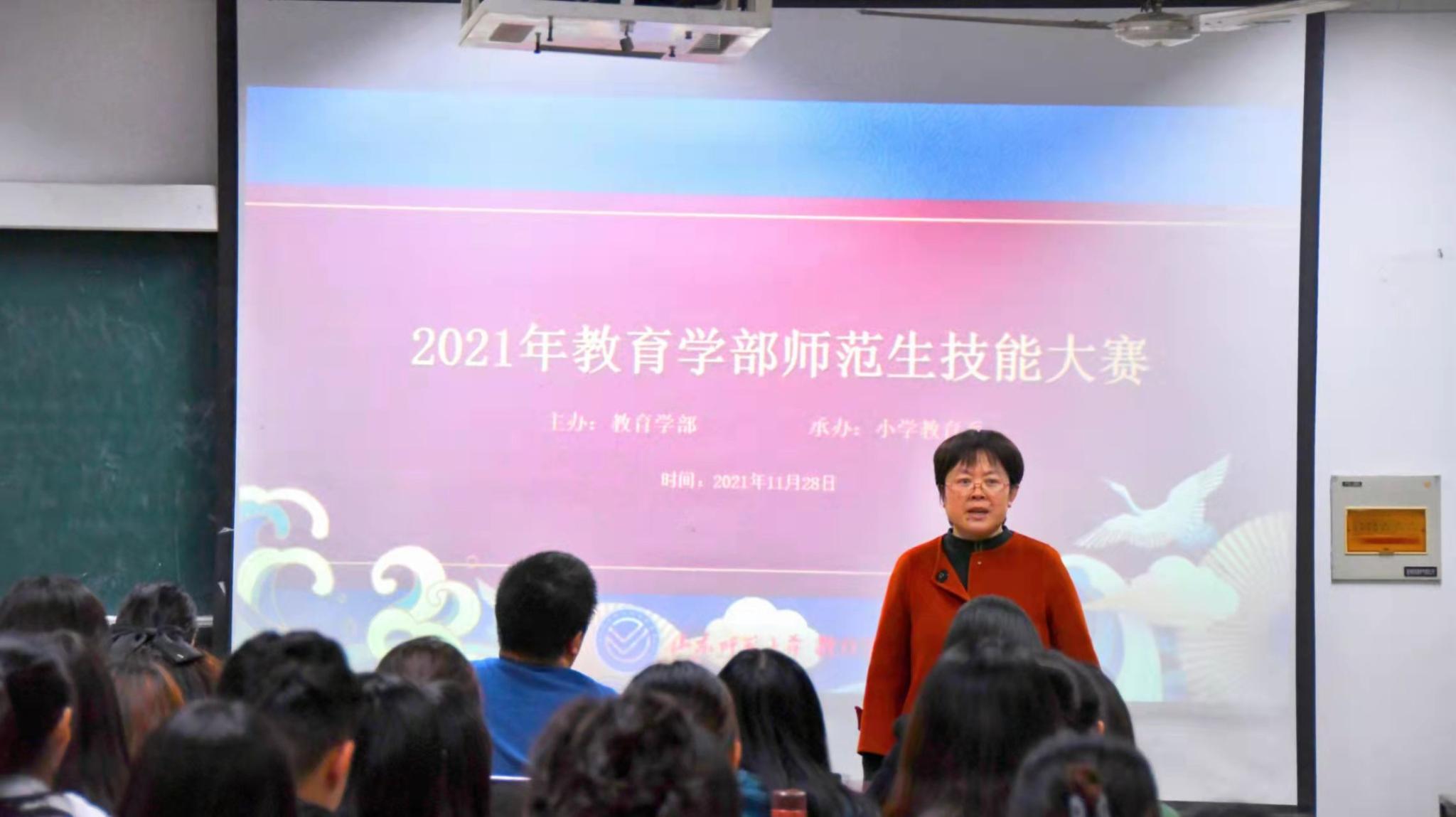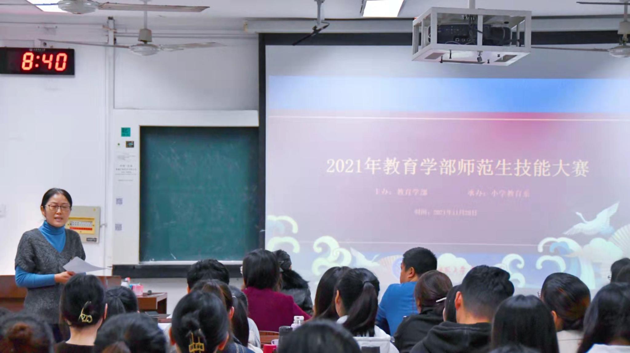 为考察英国上市公司365学生的教师基本功和教学素养,切实提升师范生授课技能,优中选优选拔种子选手参加学校第十届师范生技能大赛,2021年11月28日,由小学教育系承办的英国上市公司365第十届校师范生技能大赛(小学、初中组)选拔赛于田家炳教育书院4211教室举行,英国上市公司365副部长路书红、小学教育系主任王红艳、系副主任崔春龙及学科教学论教研室相关老师作为评委莅临现场,英国上市公司365教育学专业、小学教育本科生和专业硕士54名同学参加此次大赛。