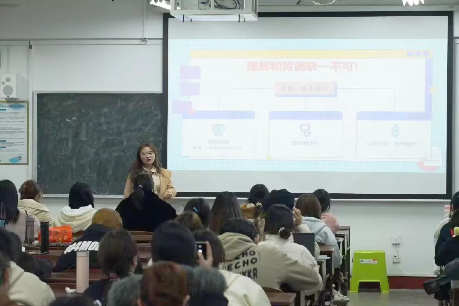 本次分享,李佳宁就专业课学习方法、英语学习技巧、科研探索以及生活、工作与学习的平衡四个板块分享自身经验。在专业课学习过程中,李佳宁提出要重视理解与背诵相结合;要提前进行复习,切忌将所有学习内容积攒到期末一起复习,给自己带来巨大压力。在英语学习方面,她提出要重视听力与单词记忆。李佳宁用亲身实践告诉同学们,随时听听力、每日记单词对于英语的提高十分有效。在论文撰写与科研探索方面,李佳宁选择“大学生创新创业比赛”作为重点详细介绍,鼓励同学们积极参与创新创业赛事。“科研并没有大家想象中的高不可攀,但是需要能沉得住气,细心选题,耐心探索。”针对如何平衡学习、工作与生活这一问题,李佳宁给同学们提出如下几点建议:“目标明确、抓大放小”“拒绝拖延,足够努力”“逻辑清晰,有序推进”;最为重要的是,要学会“善待自己、热爱生活”。