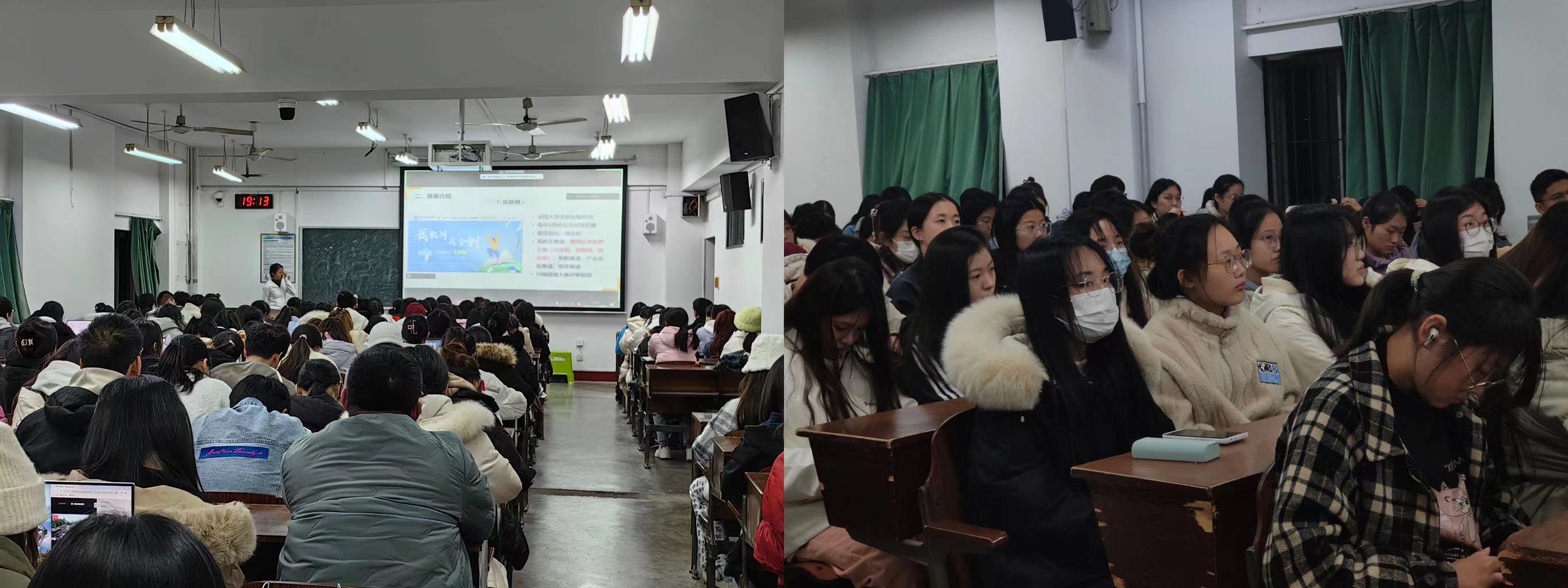 王柳仪详细地介绍了“互联网+”“挑战杯”“三创赛”“大学生创新创业训练计划”等各类创新创业赛事的参赛时间、参赛作品偏向、赛事优点、赛事内容等方面,让同学们对各类赛事有了更加深刻的了解。