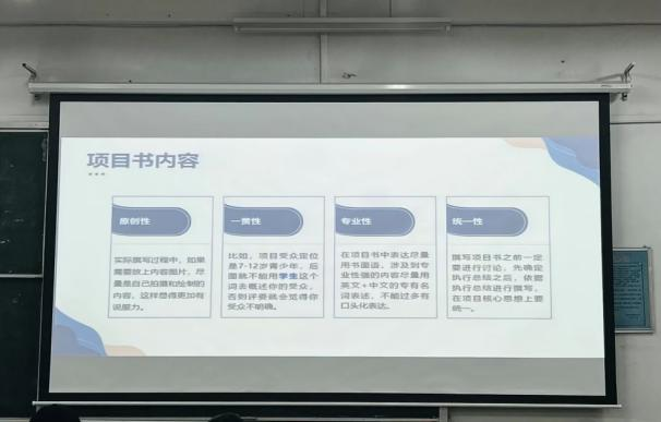 首先,李卓雅从项目选题谈起,详细介绍了选题来源的三种途径:社会实践,专业课学习和自我兴趣。结合项目名称的优秀案例,李卓雅建议同学们根据国家政策以及创新创业平台详细信息,借用多要素交叉融合等方法,结合自身实际确定选题。其次,众力并则万钧举,一个好的项目离不开优秀的团队协作。李卓雅就成员和指导老师的选择,鼓励同学们突破专业的限制,遵循就近、专业优先、年级搭配原则,大胆尝试,积极沟通,团结一心创佳绩。随之,李卓雅从项目书格式、优秀案例、内容和撰写流程四个方面,通过第一次参赛的状况与近期参赛状况相对比,分享了满满的格式撰写方面的干货。然后,她提醒同学们要关注项目的实践、运营、包装的实施工作,增强说服力和可实践性。最后,李卓雅以“纸上得来终觉浅,绝知此事要躬行”鼓励同学们勇敢迈出第一步,趁年轻,拼尽全力,去实现目标和梦想。
