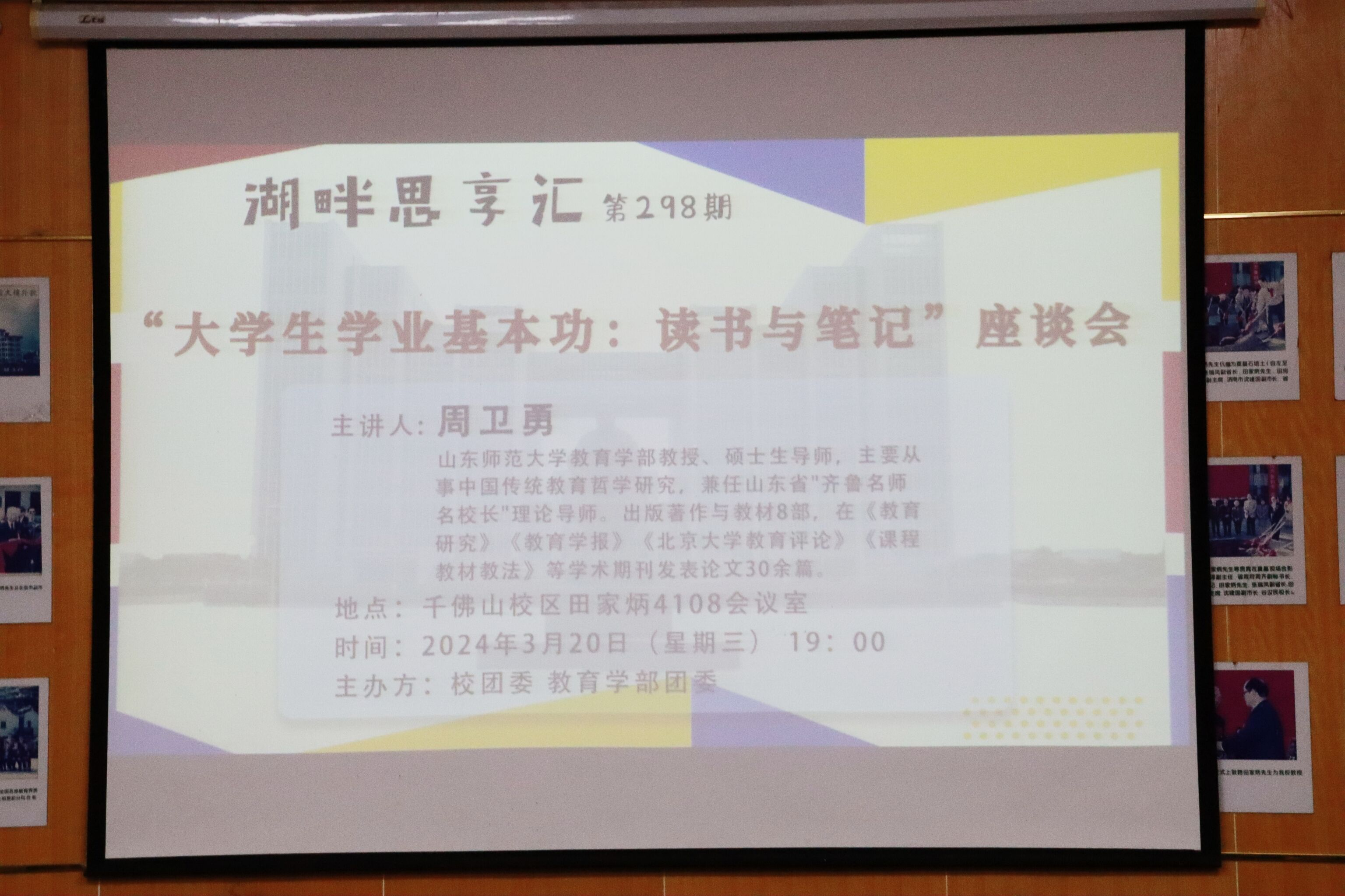 “须知少年凌云志,曾许人间第一流”,笔记是我们学习和思考的见证,它不仅承载着书中的精华、习得的知识、温习时的感悟,也记录了我们在大学中的成长过程和追梦的足迹。为传递勤奋为学、积极向上的学习风气,培养学部学生认真听讲、勤做笔记的良好习惯,英国上市公司365“大学生学业基本功:读书与笔记”座谈会于2024年3月20日在田家炳教育书院4108会议室顺利召开,本次座谈会邀请了英国上市公司365周卫勇教授作为主讲嘉宾,学部王康宁老师、王文老师、崔春龙老师、曹会龙老师以及各年级本科生代表参加此次活动。