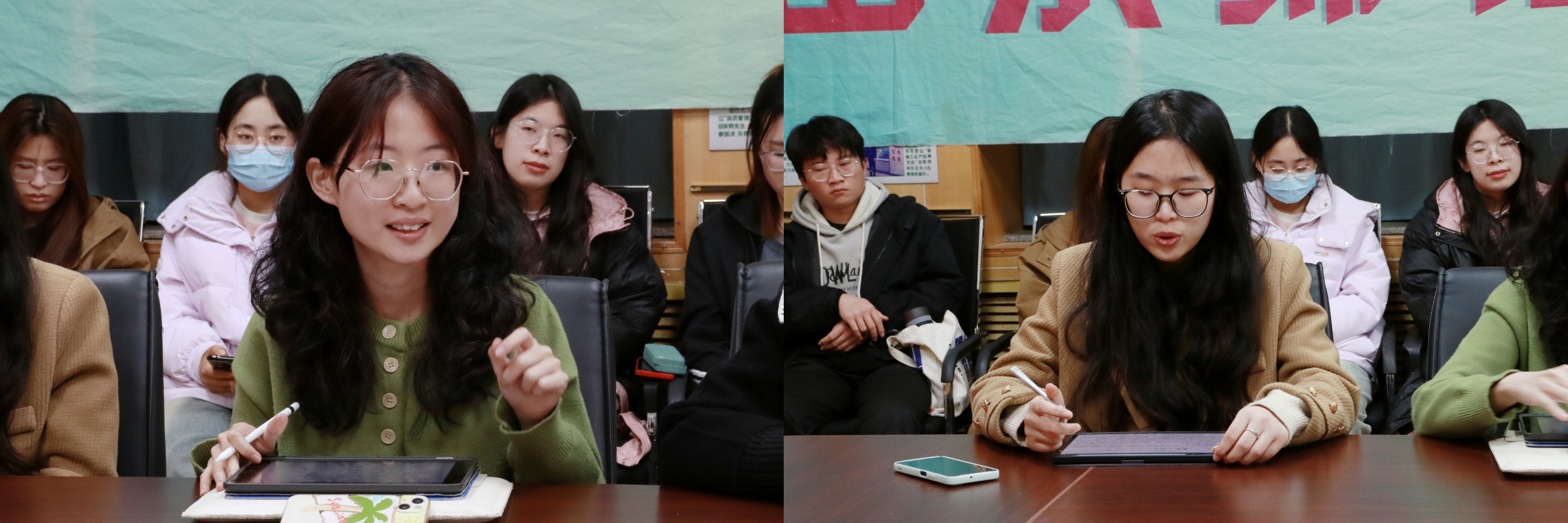 活动第二环节由优秀同学进行发言,每一位同学对做笔记都有自己独到的见解,在本次笔记座谈会中,同学们从各个角度深入分析了做笔记以及阅读的好处。孙毓彤同学提到,在读书做笔记的过程中,她的心态发生了很大的转变,同时她提出可以通过颜色、格式的转换使笔记更加一目了然。孙瑞阳同学提出在读书的过程中可以使用成果导向的方法,关于书中的一些晦涩难懂的知识,要善于联系实际。她强调在做笔记的过程中要注重自身参与,笔记是我们的一笔巨大的财富,它见证了我们的成长。张宇娇同学提出如今信息爆炸,知识储备不足只能被动接受他人,我们可以通过做笔记的方式日积月累,为以后的工作和生活做好准备。江鑫雨同学提出在整理笔记时要突出重点,可以找相关的书联系着阅读,阅读可以改变自己思考问题的方式,让自己变得更加自洽。史一涵同学提出在记笔记时要记录自己读书的感受并经常回顾,常读常新。更重要的是要将文字理解变成输出的能力,将其内化为自己的思想。陶坤林同学更是将记录看作是一件有意义的事情,通过回顾过去的笔记,可以从中看出自身的成长,笔记反映着自己对于知识的收获程度。