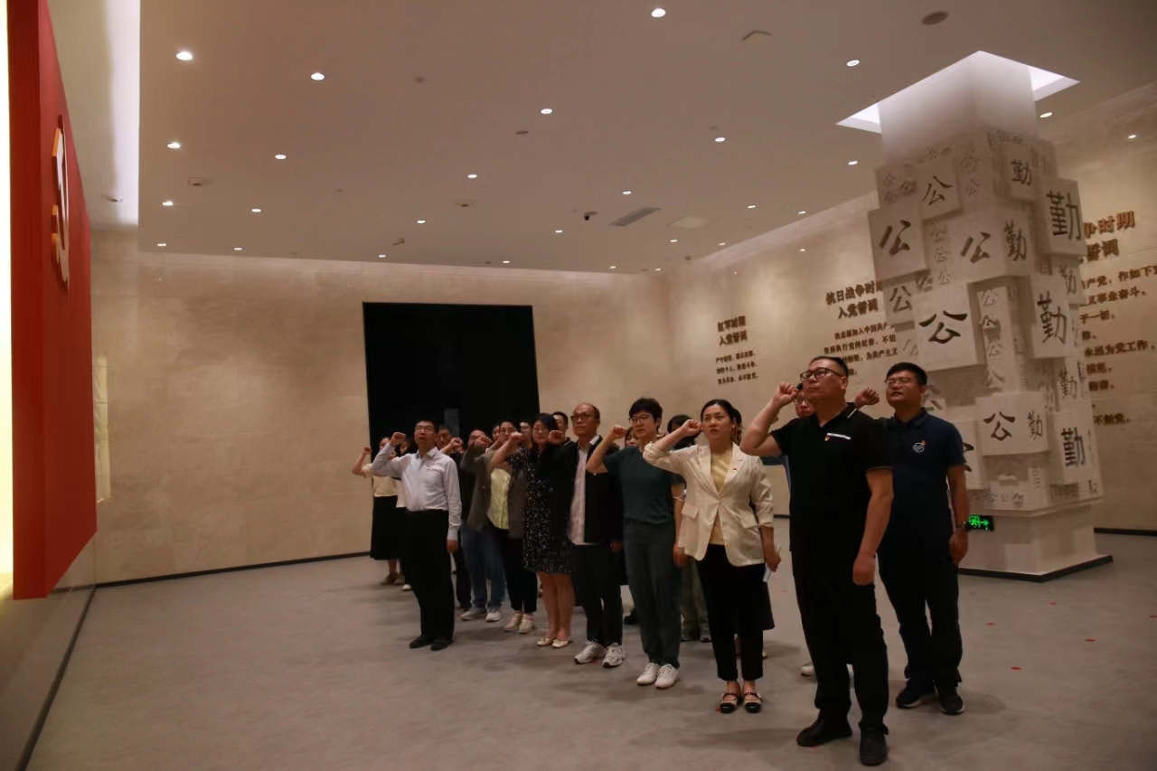 党员同志们在讲解人员的引导和解说下,依次参观了山东省廉政教育馆“不忘初心,牢记使命”“加强纪律性,革命无不胜”“全面从严治党在山东”三个主题展厅以及廉政文化专题展厅。通过聆听讲解、参观图文实录、观看警示教育视频等形式,系统学习了党在加强纪律建设中积极探索与自我革命的光辉历程,重点了解了山东省全面从严治党、党风廉政建设和反腐败斗争的部署与成果,深入学习了齐鲁文化中蕴含的家规家训、廉政思想与廉政文化,领悟党中央推进全面从严治党战略部署和反腐倡廉的深刻寓意。在宣誓厅,陈正带领全体党员同志面对党旗庄严宣誓,重温入党誓词,感悟共产党员的初心使命,坚定为共产主义事业奋斗终身的决心。