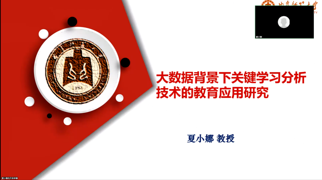 2024年10月30日晚,教育技术系技术教研室为深化“以研助教”认识,推进“教研相长”实践,在线举办了一场题为“大数据背景下关键学习分析技术的教育应用研究”的学术讲座。本次报告会邀请到曲阜师范大学教育信息科学与技术研究中心主任夏小娜教授主讲。整个活动由教研室主任吴磊老师主持,教育技术系技术教研室全体教师以及部分本科生、研究生参加了此次会议。