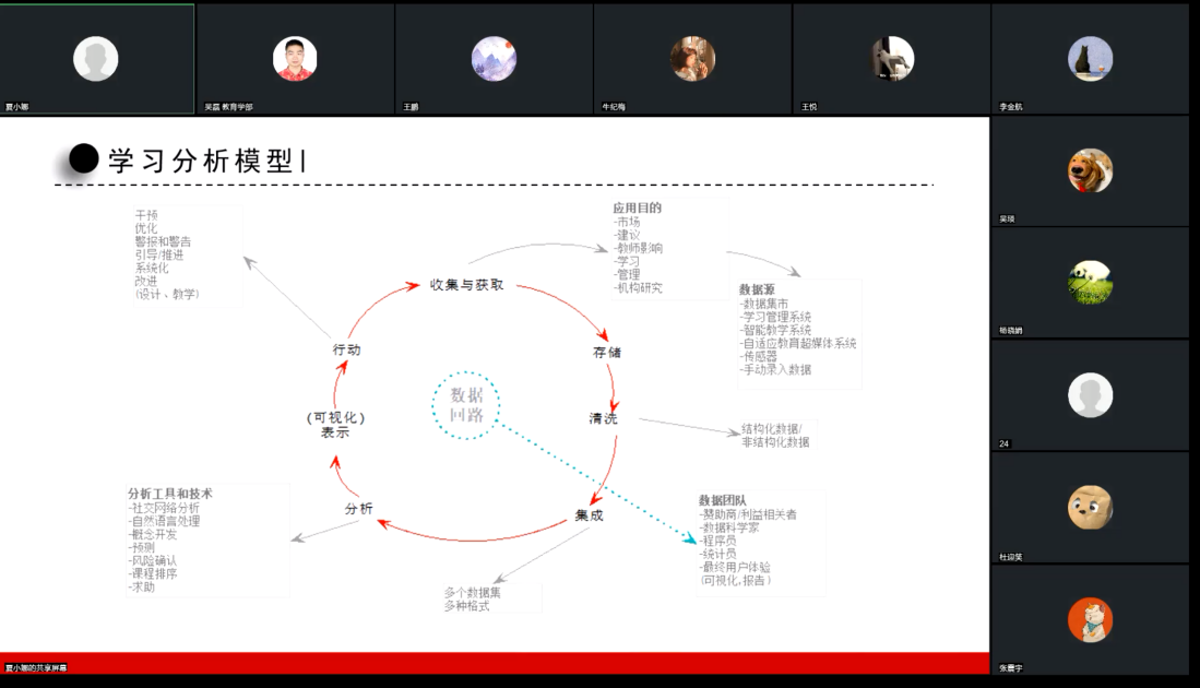 夏小娜教授主要讨论了大数据背景下教育变革的关键学习分析技术。她指出,大数据驱动的教育变革是必然要求,学习分析技术是开展教育变革的重要支撑。通过挖掘关键信息,才能解决教育决策的关键问题。同时,学习分析技术可以帮助授课者精确掌握学习者的学习情况,有效展开教学和改进教学。此外,夏小娜教授还提到了教育数据挖掘,涉及统计模型、机器学习、深度学习等方面的知识。她还强调了传统的大数据分析方法以解决教育问题为目标,通过检验来推导出学习活动和学习行为以及测验之间的关系,提高学习行为描述的全面性和有效性。最后,通过具体的研究案例,分享了自己的研究范式以及问题思维形成过程。