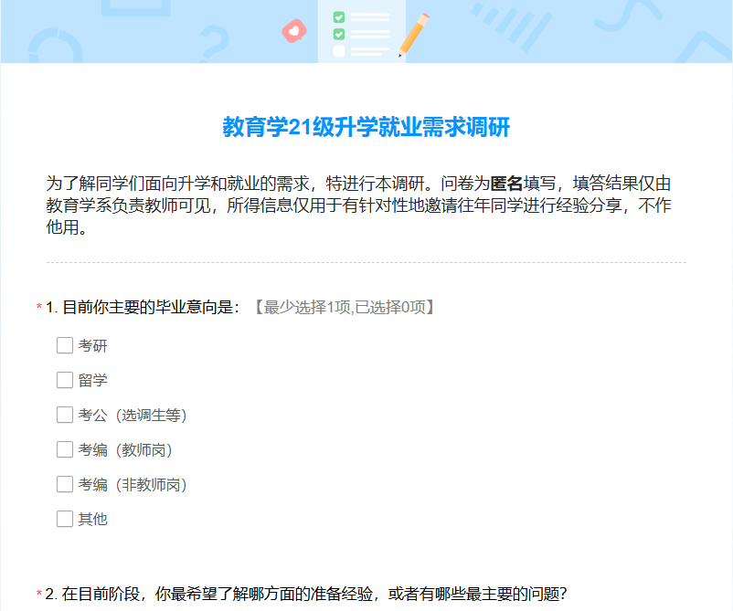 首先,教育学专业通过调查研究推动工作落实,于2024年10月面向2021级本科生发放了升学就业需求调研问卷,并对调研结果进行总结。
