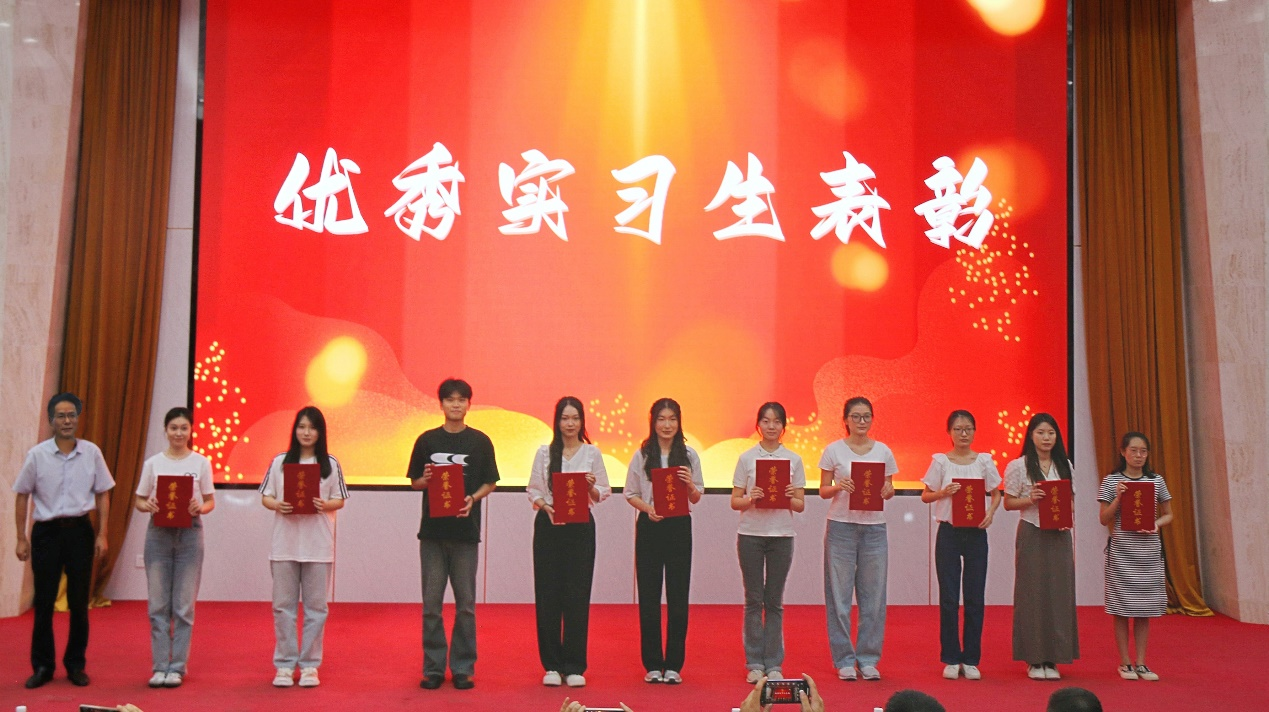 在实习风采展示结束后,徐继存部长为优秀实习生代表颁发荣誉证书,以表彰他们在实习期间的出色表现,每位获奖同学的脸上都洋溢着自豪与喜悦。