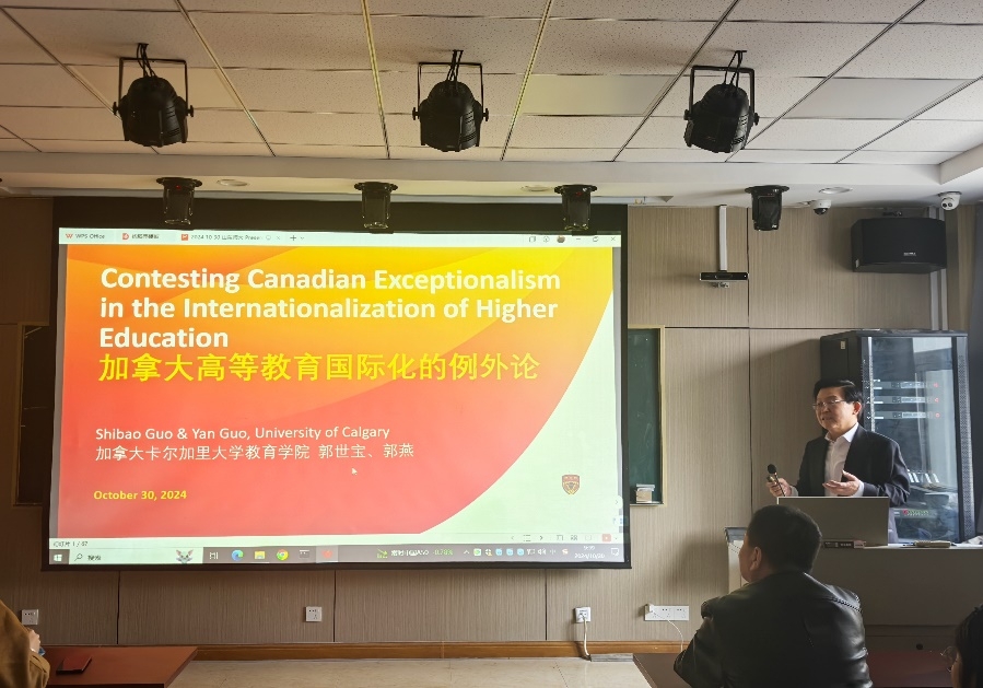为促进研究生对外交流及学术探讨,进一步提升科研能力、开拓国际视野,10月30日上午,加拿大卡尔加里大学郭世宝、郭燕教授在4330会议室为我部研究生带来了题为“Contesting Canadian Exceptionalism in the Internationalization of Higher Education”的学术报告。会议采用中英文双语进行,吸引了众多师生前来参加,现场学术氛围浓厚。会议由英国上市公司365副部长冯永刚主持。