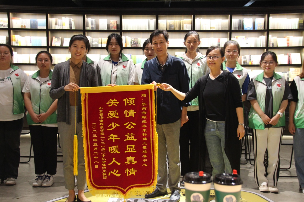 融爱未来——孤独症儿童融合教育服务团队(简称“融爱未来”)致力于为0-12岁孤独症谱系障碍和发育迟缓儿童、教育机构、康复机构提供包括志愿服务、课程服务、师资培训等在内的融合教育整体解决方案。2021年9月,团队注册成立民非机构“济南市融爱未来特殊儿童服务中心”,打造山泉水和咖啡公益品牌并积极开展义卖活动,发展志愿者1632人。2022年4月,融爱未来入选教育部——联合国儿童基金会,2021-2025年融合教育推进项目团队荣获中国国际大学生创新大赛(2023)国家级金奖。时任中残联主席张海迪、山东省委常委刘强书记、山东省委宣传部副部长程守田等多级领导对项目高度关怀。