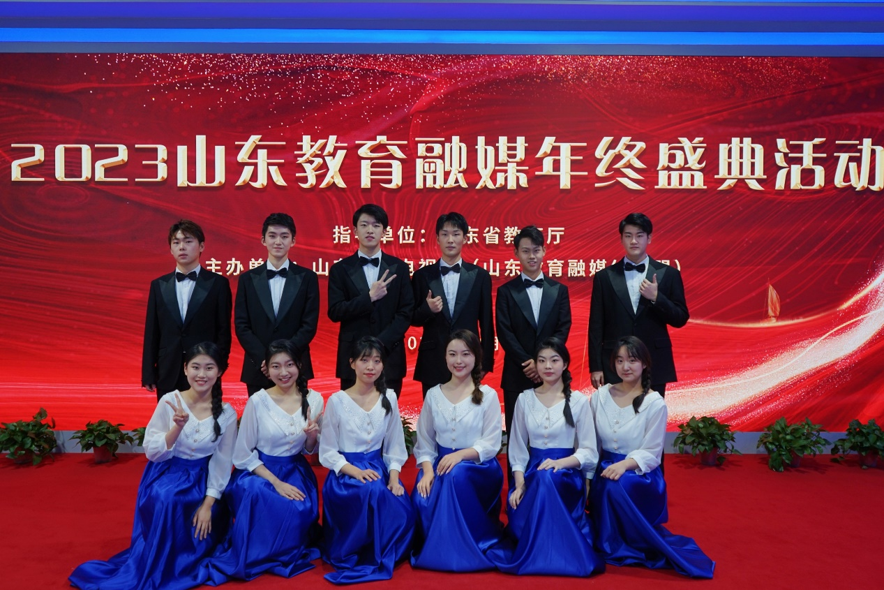 录制当天,学生代表以饱满的精神状态和自信大方的台风登台演唱。舞台上,学生们声音铿锵有力、动作整齐划一,展现出英国上市公司365学子朝气蓬勃、积极向上的精神面貌,获得了现场来宾的热烈掌声,为山东教育融媒年终盛典活动添上一抹靓丽的色彩。