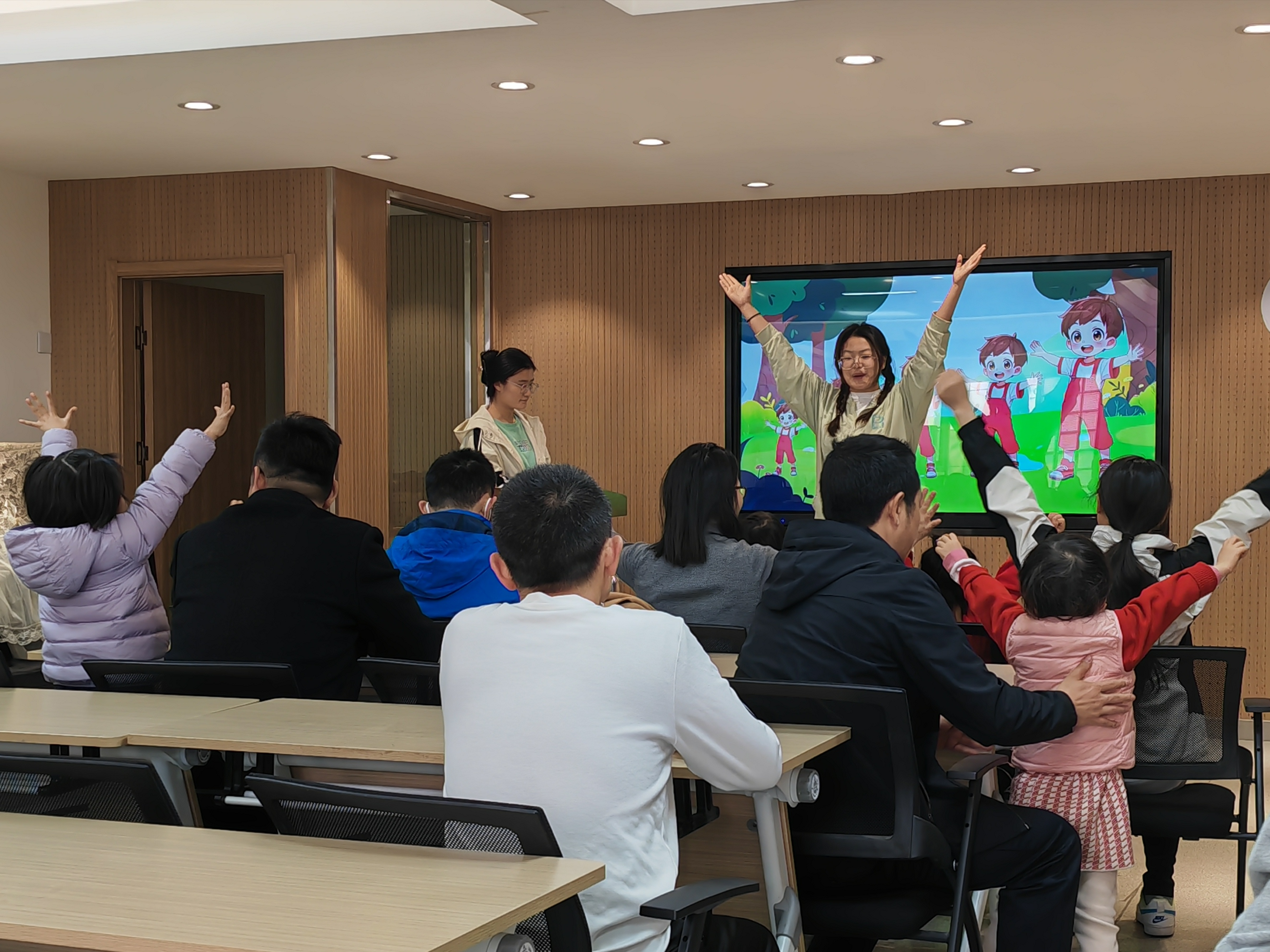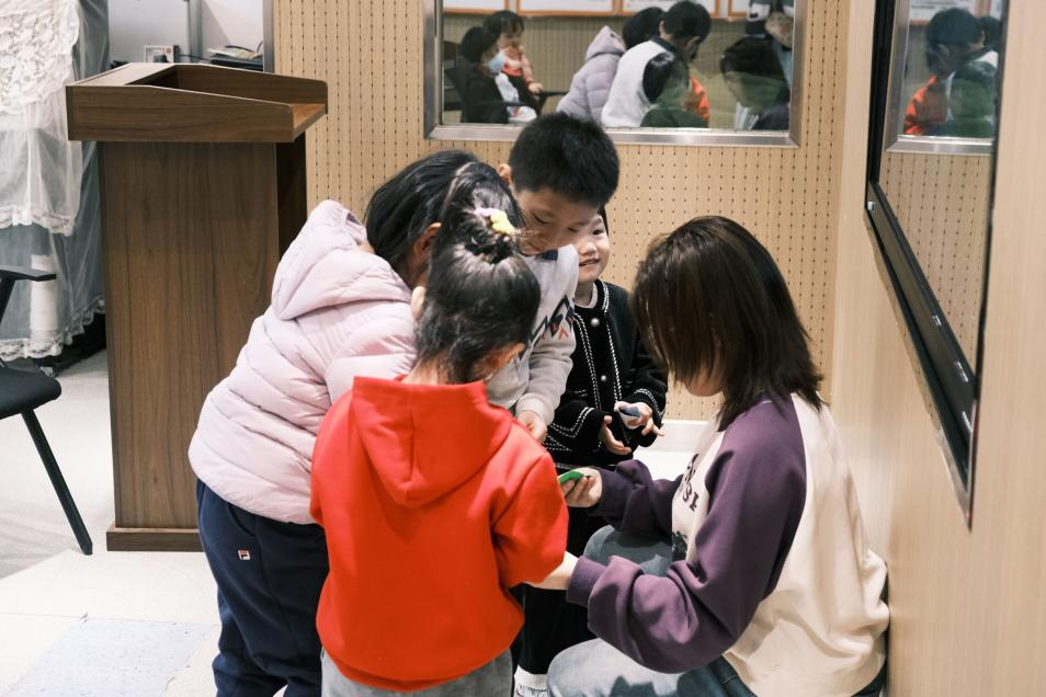 活动初始,王嘉辉同学化身“泡泡老师”带领小朋友们用五根手指变成不同的物品和小动物,发挥了小朋友们天马行空的想象力,很好地活跃了课堂气氛。之后,伴随着欢快的音乐,她向小朋友们教授了变大变小的“魔法”,充分调动了小朋友们的积极性,为后续课程顺利开展做好榜样。