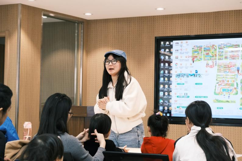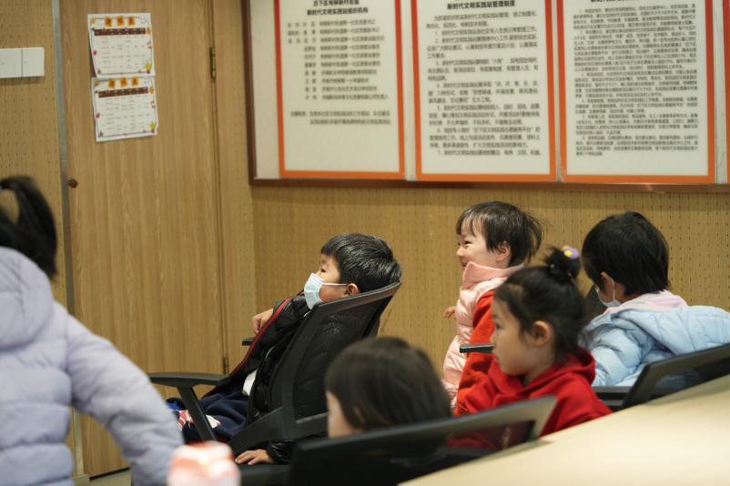 接下来,张璇、宋昭然、岳冬玮三位同学针对小班、中班、大班不同年龄阶段的小朋友,带来三本绘本,小朋友们排排坐,对绘本中的童话世界十分向往。