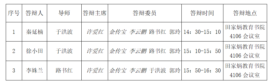 学位论文答辩会安排表