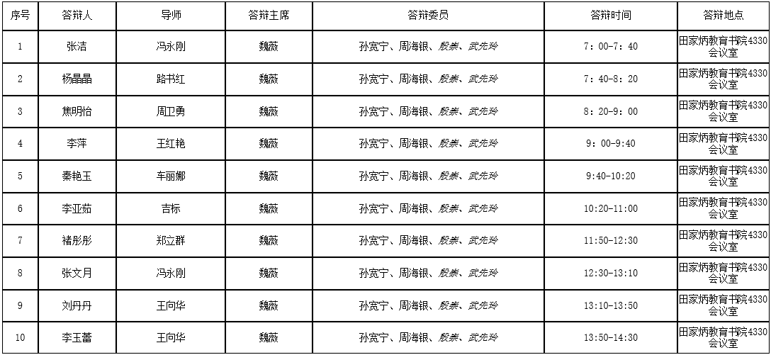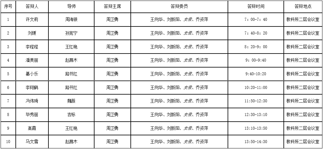 一组:魏薇(答辩主席)、孙宽宁、周海银、武先玲、殷崇