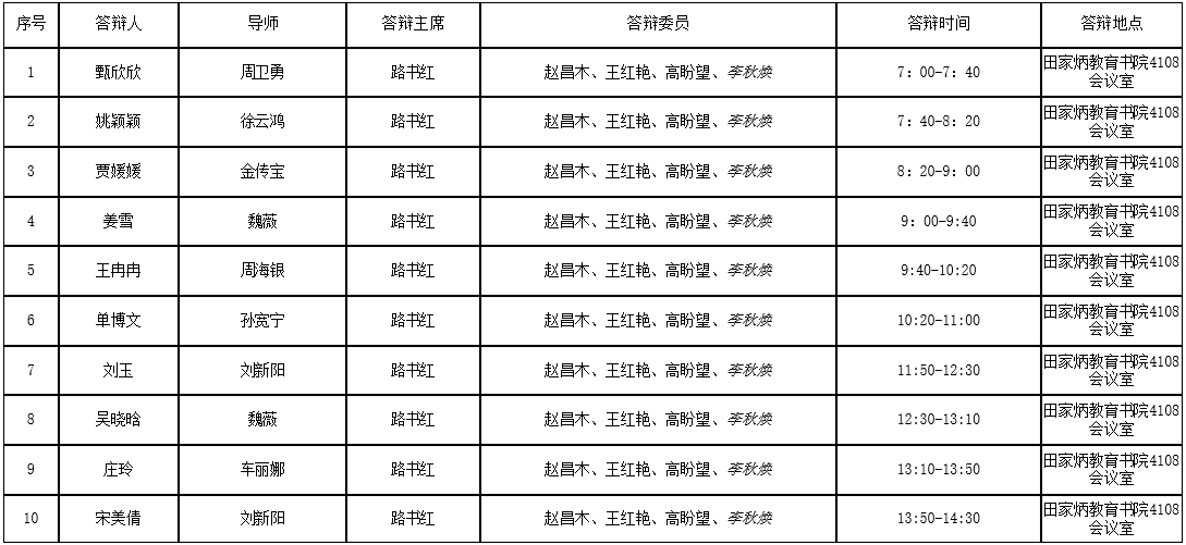 二组:路书红(答辩主席)、赵昌木、王红艳、高盼望、李秋焕