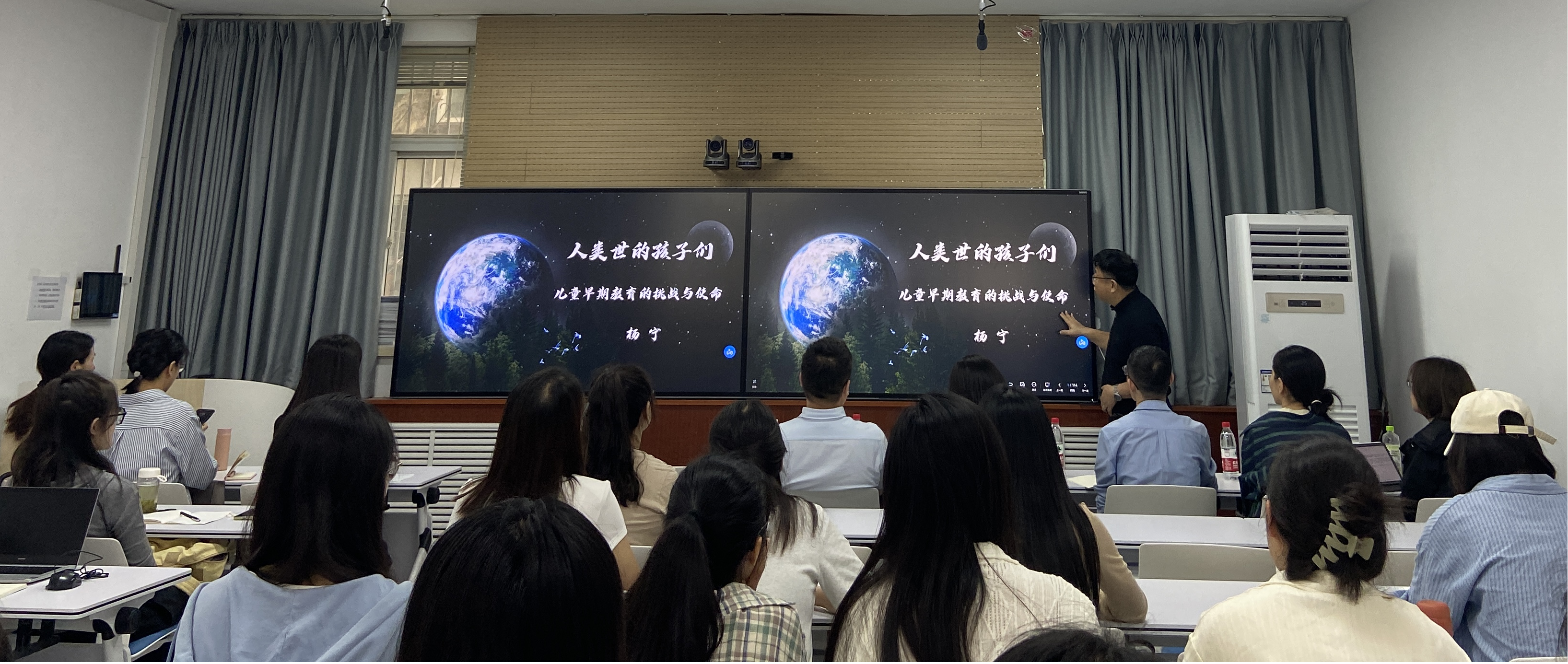 杨宁教授从人类文明发展的角度,阐释了人类世的概念及其扩展性内涵,结合数字化时代个体经验和感觉方式的变化,对处在人类世的孩子们的生存境遇及心理现实问题进行了深度剖析。杨宁教授指出,对未来儿童的关怀是人类的根本问题,儿童早期教育的使命是要帮助儿童重建与自然、与附近(邻里)、与传统的关系,提倡可持续发展的教育。