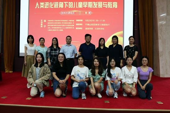报告开始前,杜传坤教授致辞,对杨宁教授来我校做学术报告表示热烈欢迎。杨宁教授从人类进化的视角阐述了儿童早期发展与教育的相关问题,主要内容包括童年期的界定、童年期的延长或在个体生命周期中的嵌入、童年期延长或嵌入的可能机制、童年期延长或不成熟在个体发展中的作用以及对早期教育的启示等。本次报告有助于我们更加审慎地认识儿童身心发展的特点,更加辩证地看待个体发展的可能性与现实性,从而构建起科学合理的早期教育观。