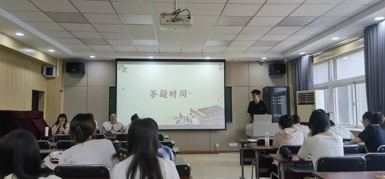 在最后的问答环节,2021级教育学专业的同学们踊跃提问,四位主讲人在现场对同学们在考研保研方面的问题给予详细解答,在互动交流中进行思维的碰撞。