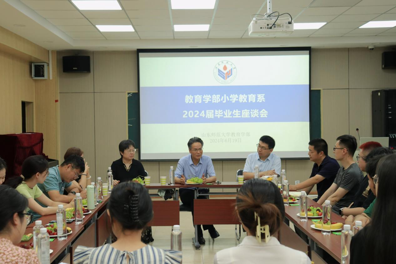 毕业生座谈会中,学部党委书记陈正、部长徐继存、副部长路书红、小学教育系主任王红艳、辅导员曹会龙和小学教育系师生代表参加了座谈会。首先,徐继存部长简要回顾了学部近年来的考研和就业情况,并对学部的未来发展充满了期望。他希望同学们要充分发挥自身主观能动性,勇于挑战自我,无论未来面对何种环境,都要保持一颗积极向上的心,成为学部的骄傲。陈正书记指出,同学们的建议对学部十分有益,是促进学部发展的重要力量。他表示,学校见证了同学们的成长,同学们也为学校的高质量发展作出了贡献,毕业后同学们将奔赴各自的工作岗位,希望同学们积极关注母校动态、支持母校发展,与母校携手并进、共谋教育事业新篇章。毕业生辅导员曹会龙老师针对同学们提出的宿舍建设、行政管理方面的问题进行回应解答,对同学们提出的宝贵建议表示感谢,并指出学部建设不仅靠老师还要靠学生,师生共同努力才能造就学部更美好的明天。他希望同学们能够坚定理想、砥砺前进,并预祝大家能够取得更大的进步。其次,2020级优秀毕业生围绕培养方案、课程设置、宿舍情况等方面,积极为学校教育、教学、管理等方面的优化改善建言献策。毕业生代表们通过回忆自己在山师学习、工作和生活的点点滴滴,感恩学部提供良好平台和发展机遇的同时,结合自身实际向学部老师分享自己对专业课程设置、特色文化建设、实践活动开展等方面的建议。学部领导与专业老师认真听取了毕业生代表提出的意见建议,并结合实际情况对同学们提出的意见进行了详细的解答和回应。这种开放、平等的交流方式让毕业生们充分感受到学部对毕业学子的关心和爱护。