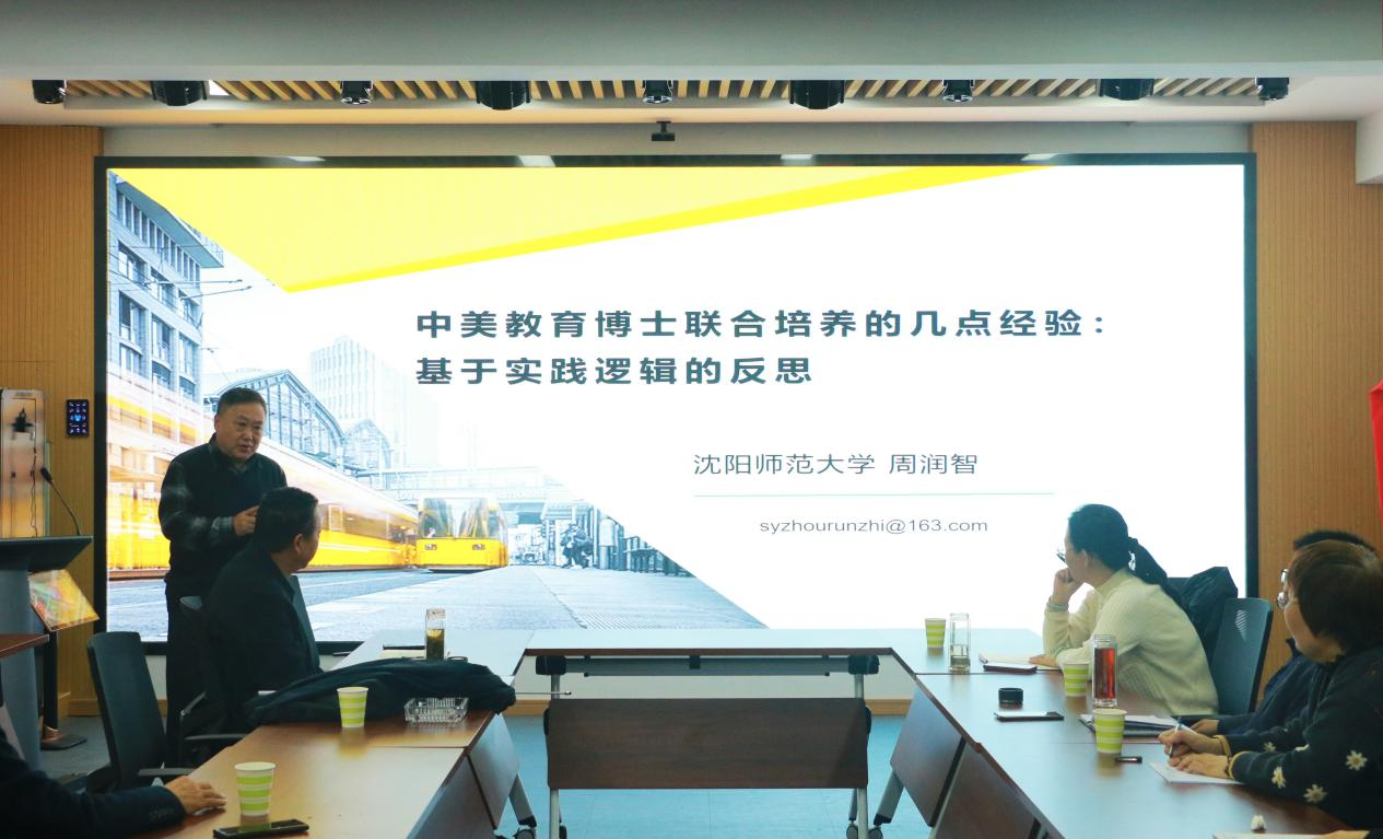 周润智为学部教育博士导师作了题为《中美教育博士联合培养的几点经验:基于实践逻辑的反思》的报告,围绕背景介绍、实践逻辑:为何与何为、实践与反思、结语四个方面展开。他首先对沈阳师范大学的中美教育博士培养项目进行了简要介绍,并强调硕博研究生培养要注重实践性。他提出,要以教育部的研究生教育高质量发展意见为指南,以各学校的实际发展状况为依据,不断完善学科专业体系,重塑培养流程要素,重构协同机制,营造一个高质量的研究生培养环境。周润智还分享了自己基于沈阳师范大学课程及制度设置情况的几点反思,例如可以尝试确立“三明治”式教学与双导师制、理论教学实施课堂双师制、专家负责制等,为教育博士导师们今后的教学及管理方向提供了参考。