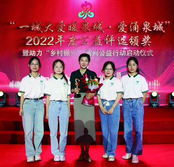 “融爱未来”团队获评2022年度“爱涌泉城”十佳公益组织。图为该项目负责人孟媛(中)与团队主要成员合影。