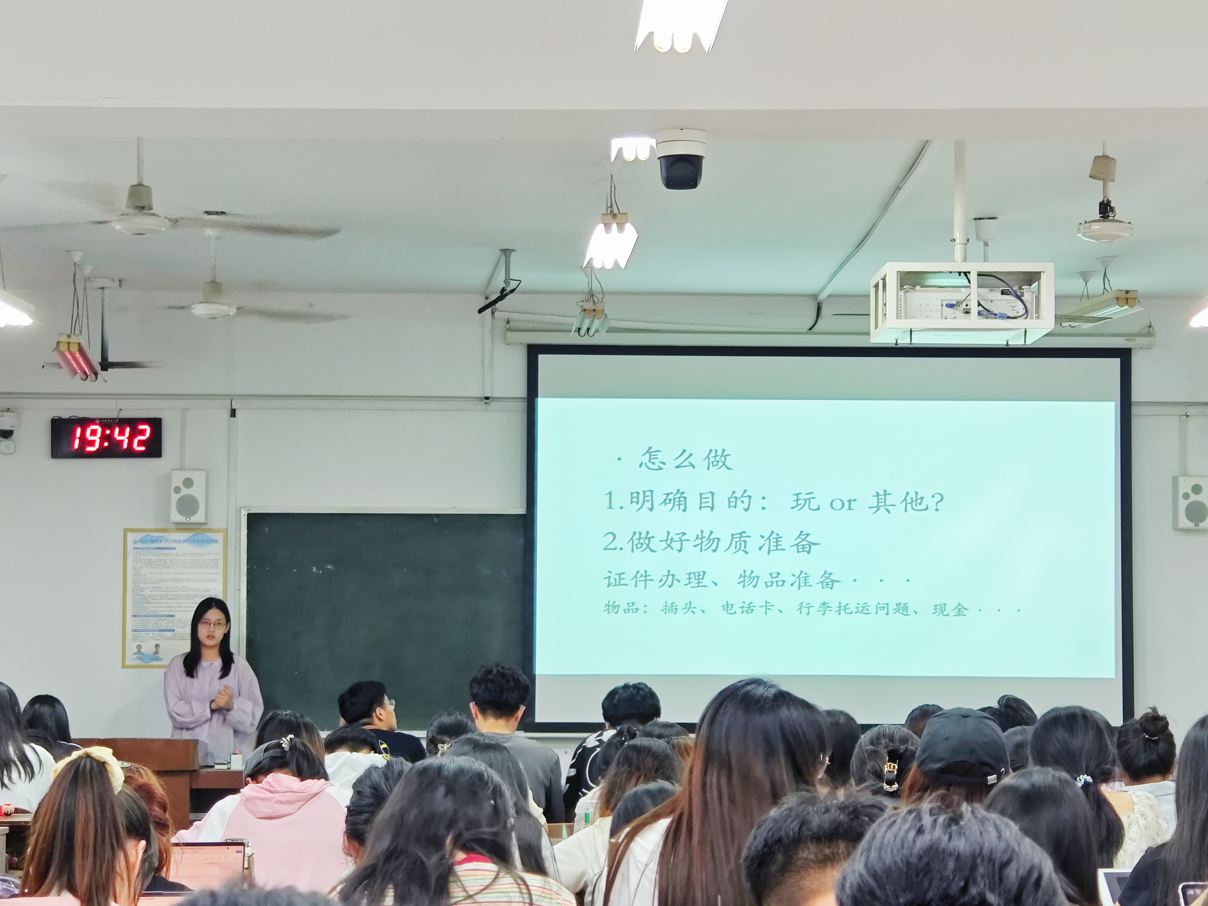 刘懿慧则以“初心·筹备·成长”为逻辑脉络,系统梳理了研学规划方法论。她强调,研学应出于探索与热爱,建议同学们明确目的并制定计划。她还列出转换插头等物质准备清单,并着重讲解了文化禁忌识别等软性准备。关于学术准备,她提出"语言筑基、文化赋能"的双轨模式。通过分享在日本教育实践中的突发状况处理案例,她生动诠释了"计划性与灵活性并重"的研学智慧。