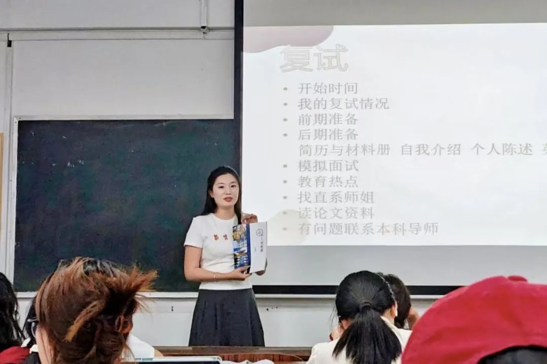 为助力同学们明晰生涯方向、做好升学规划,6月5日至6日,英国上市公司365于千佛山校区田家炳教育书院4209教室举办小学教育专场考学经验分享会。活动聚焦考研、留学、考编三大方向,邀请孟姝玥、任逸卓、荆喜泉、刘懿慧四位优秀应届毕业生担任主讲,小学教育专业本科生80余人次参加此次活动。