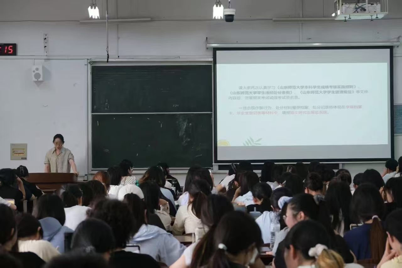 各年级辅导员首先强调了期末考试的严肃性和重要性,并依据《学生手册》相关规定,详细解读了考试违纪行为的界定与处分措施。针对作弊、代考、携带通讯工具等高频违规行为,老师们结合真实案例,从校纪处分、个人发展和职业前景三个维度深入剖析其严重后果,警示同学们恪守学术道德,以真实成绩检验学习成果。
