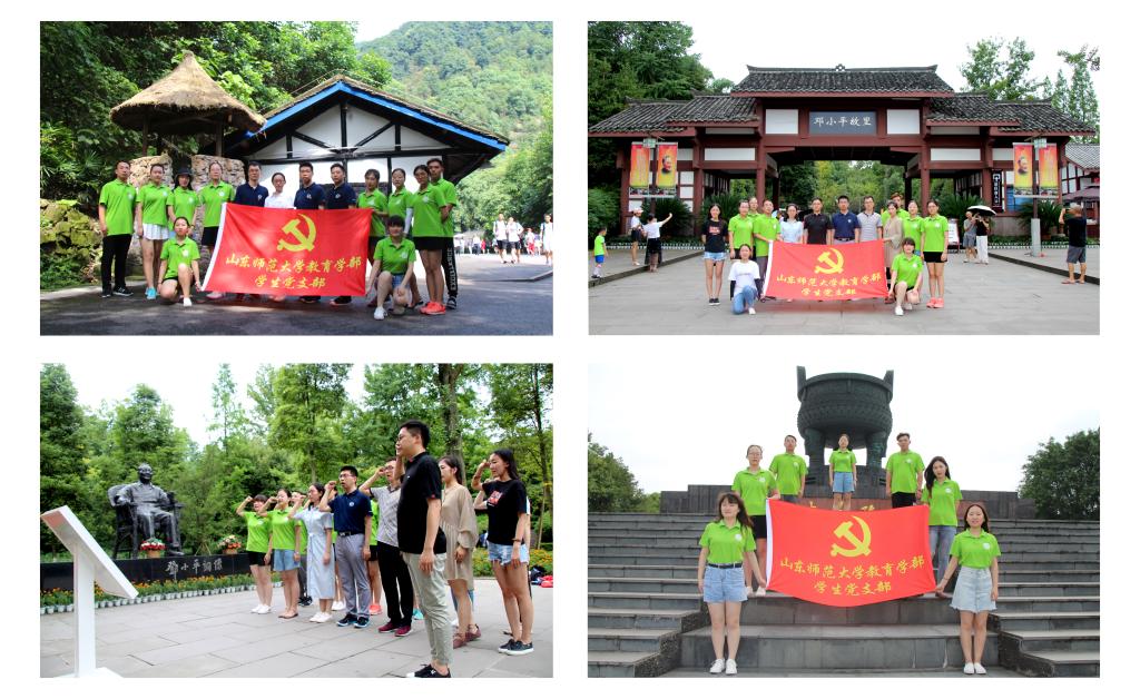 11日,考察队一行前往华蓥山。茂密的植被与绮丽的岩溶景观在令人惊叹的同时,更书写了感人的红色历史与英雄史诗。在参观了华蓥山游击队等系列红色景点,深刻全面了解到华蓥山红岩精神之后,学部党委副书记陈正感叹道:“对同学们来说,这不仅是一次生动难忘的爱国主义教育,更是一次践行'不忘初心,牢记使命'信念的行动。”当日下午,学生党支部考察团走进邓小平同志的故乡,去往邓小平铜像广场。队员们怀着无比崇敬的心情瞻仰了铜像,并重温入党誓词,接受了青年党员的思想觉悟教育。随后,师生们在小平故居陈列馆中参观了各类文献资料,团队成员深刻感受到了小平同志为中国革命、建设和改革事业不懈奋斗的光辉一生,受到一次深刻的革命理想信念教育。本次活动也激励着全体师生开拓进取、勇于创新的意志决心。