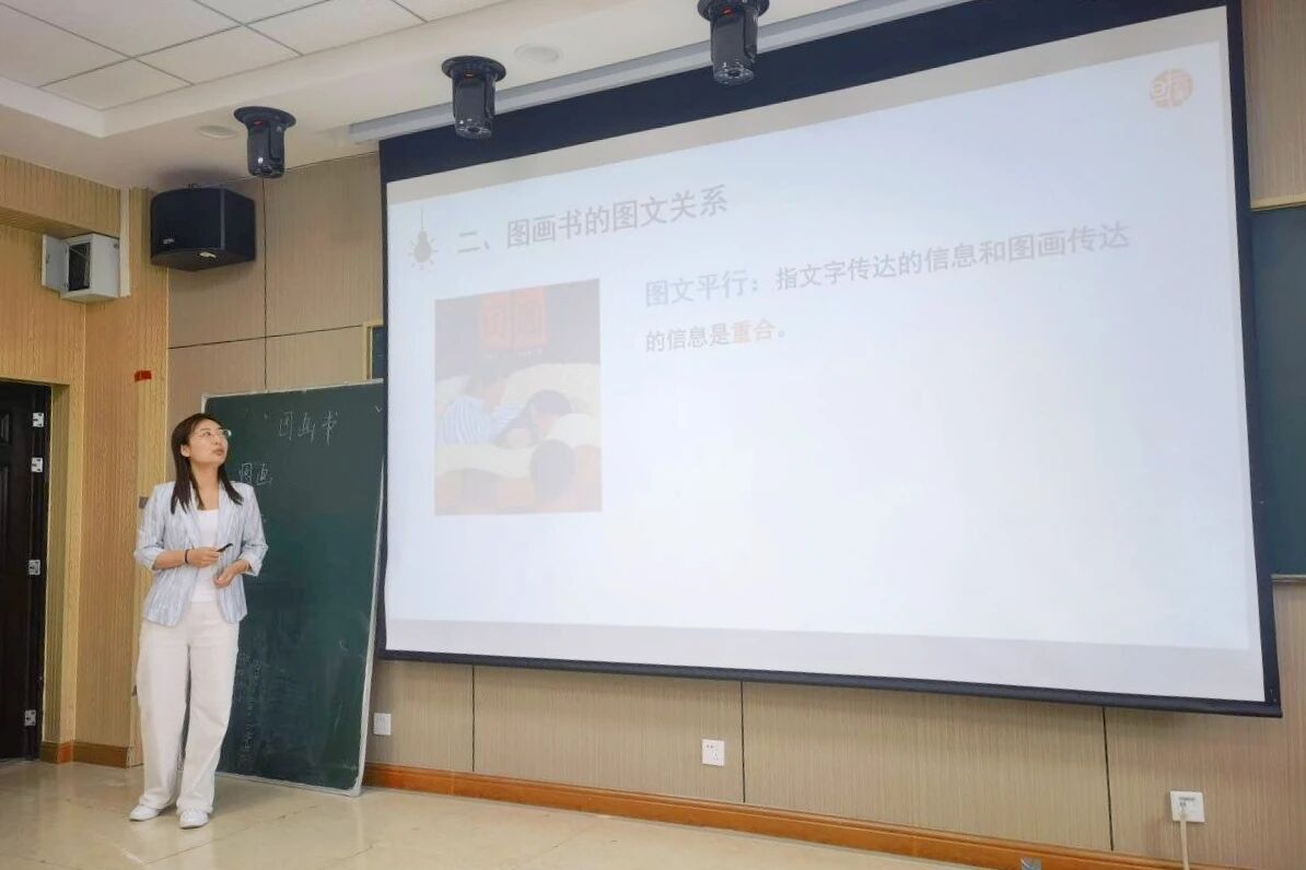 第二位进行展示的是袭祥荣老师,她主讲的参赛课题是《图画书的基本理论》。她配合图文并茂的PPT和丰富的案例,生动讲解了图画书的概念及三种图文关系,教学过程富有感染力。