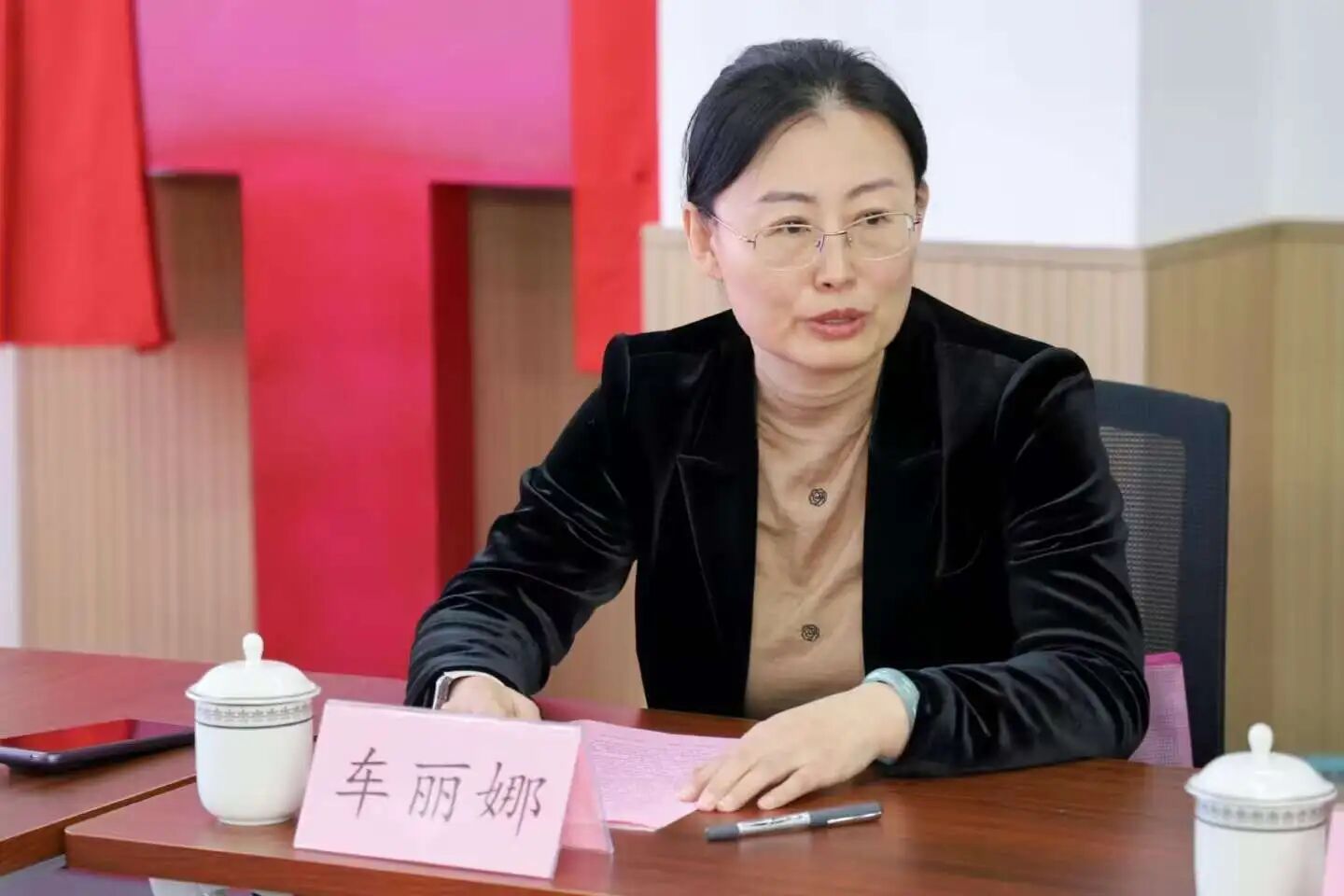 车丽娜介绍了学部的发展历程与学科专业建设情况。她表示,学部历史悠久、底蕴深厚,近年来,在高水平师资团队的引领下,学科建设成果显著——先后承担国家重大重点科研项目,荣获多项国家级教学成果奖,并搭建了多个国家级教学科研平台。她强调,学部紧密对接基础教育发展趋势,在动态调整师范生招生规模的同时,聚焦“学科核心素养”与“学生中心”教育理念,持续优化人才培养体系。