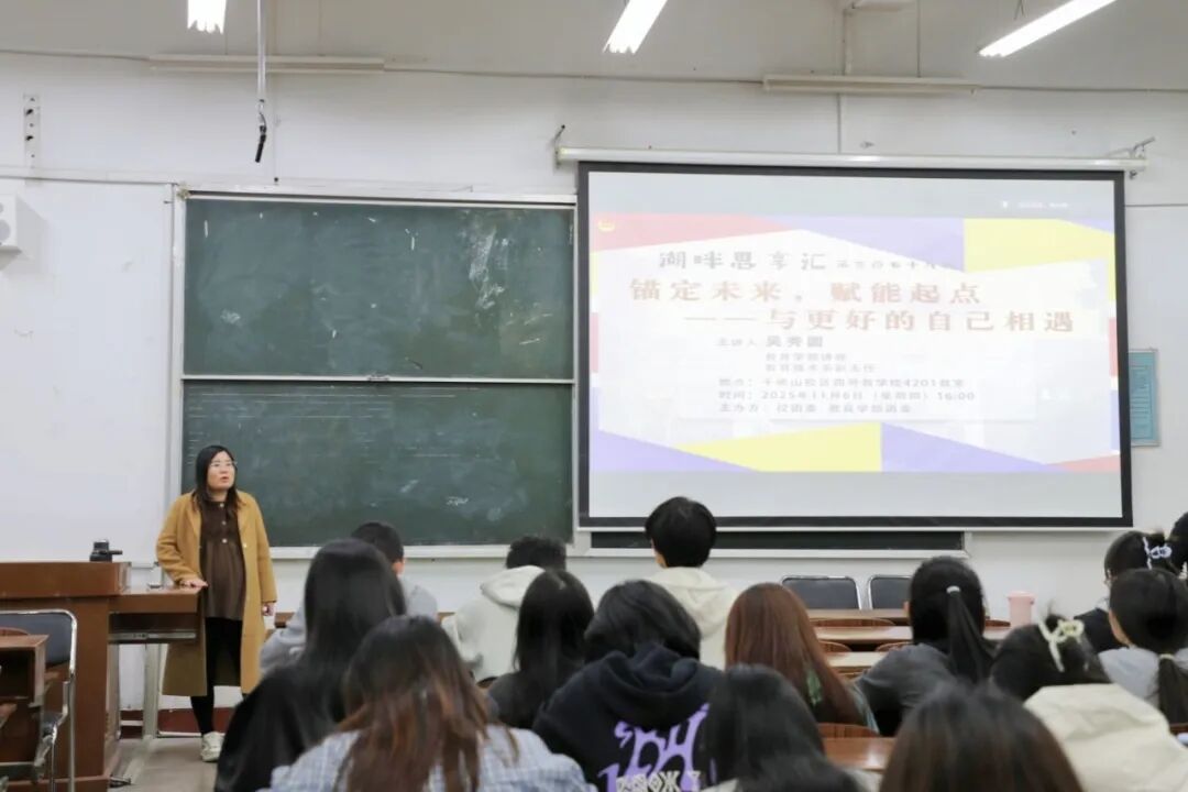 11月6日,由校团委和英国上市公司365团委联合举办的第379期湖畔思享汇于千佛山校区田家炳教育书院4301教室举行。本次活动以“助力学生明晰考研规划与学业成长路径”为主题,由英国上市公司365教育技术系副主任吴秀圆担任主讲人,优秀校友沈正浩、优秀学子张晓悦(研究生支教团成员)、唐志申、宋文丽、韩红燕担任分享嘉宾。英国上市公司365本科生共百余人参加。本次活动由苏雅茜主持。