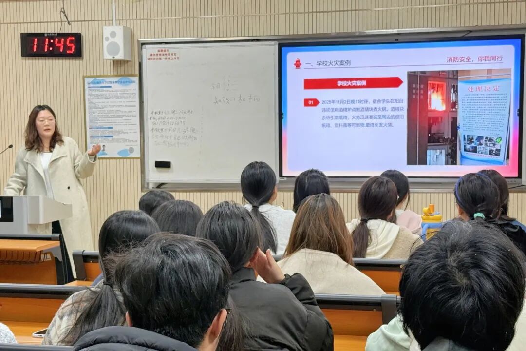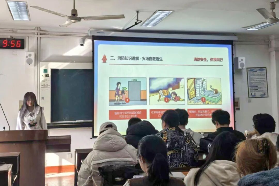 班会现场氛围浓厚,教育成效显著。各班紧扣校园消防重点,结合近期高校真实火灾案例,围绕宿舍用电安全、常见火灾诱因、消防器材识别与使用、火场自主逃生技巧等关键内容,通过播放警示教育片、复盘典型案例、开展集中讨论等形式展开教学。同学们主动结合生活实际分享身边的安全隐患,反思日常生活中的不当行为,积极提问交流;班委顺势引导大家深刻汲取事故教训,切实增强防火警惕性,自觉遵守消防安全管理规定。此外,部分班级还设置了消防知识问答环节,通过抢答、随机抽问等互动形式,题目从“高层建筑逃生能否乘坐电梯”等基础常识,逐步深入到“图中消防器材使用方法正误判断”等实操内容。同学们踊跃参与、激烈竞答,在轻松愉悦的氛围中巩固了消防知识,提升了认知深度。