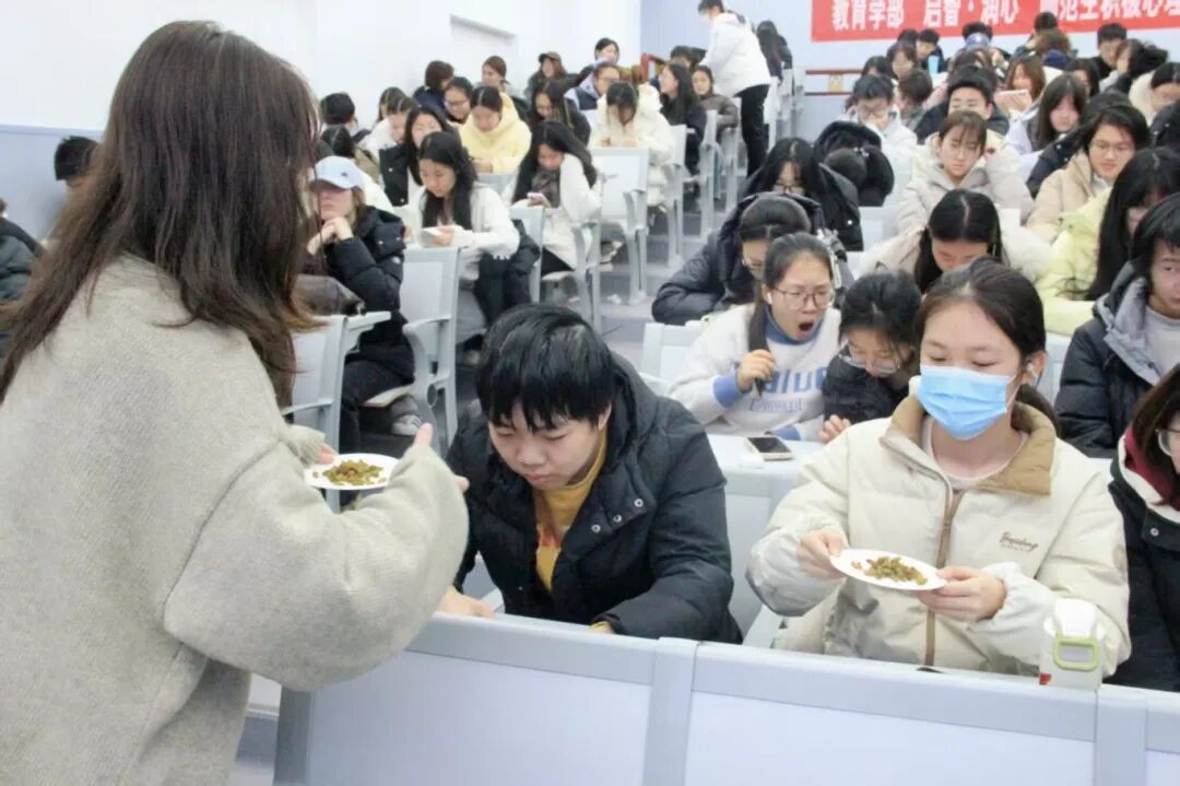 讲座中,丁晓南老师以通俗易懂的语言为同学们阐释了“正念”的核心概念,并从身心调节、情绪管理、效率提升等维度,深入剖析了正念对大学生身心健康与职业发展的重要意义,让在场的同学们对正念有了清晰且系统的认知。随后,丁晓南老师结合师范生成长路径图,贴近同学们的生活实际,精准剖析了同学们在目标设定、学习实践、职业规划中常见的焦虑、迷茫等心理困境,引发了同学们的强烈共鸣。理论讲解过后,迎来了同学们期待已久的沉浸式体验环节。通过播放专业的正念引导音频,同学们将注意力回归当下,在一吸一呼中感知身心的放松与稳定。随后进行的“正念法进食葡萄干练习”则将现场氛围推至高潮:从指尖触摸葡萄干的纹理,到细细嗅闻其果香,再到聆听其与果盘碰撞发出的轻微声响、最后缓慢咀嚼与品味葡萄干,多感官的专注体验让同学们在不知不觉中理解了正念“觉察当下、全然投入”的核心内涵,愈发专注而投入。