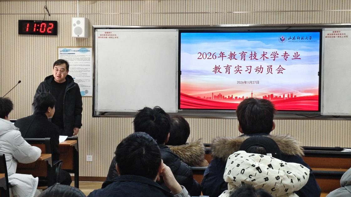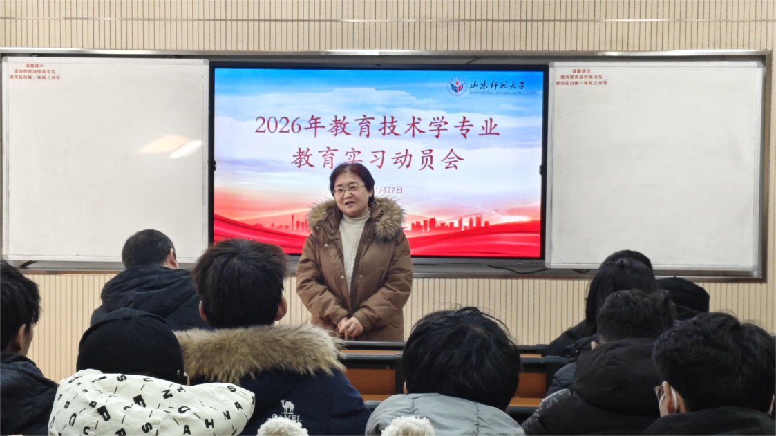 王春华则结合专业特点,对实习内容作了具体说明。她指出,教育技术学专业的实习工作,除课堂教学外,还涵盖机房管理、资源制作、活动支持等多项任务,同学们需在寒假提前熟悉教材、观摩优质课,提升技术操作能力。她鼓励大家珍惜教育实习机会,全身心投入,虚心请教,团结互助,在实践中学真知、长本领。同时,要合理安排时间,协调好实习与学业的时间安排。